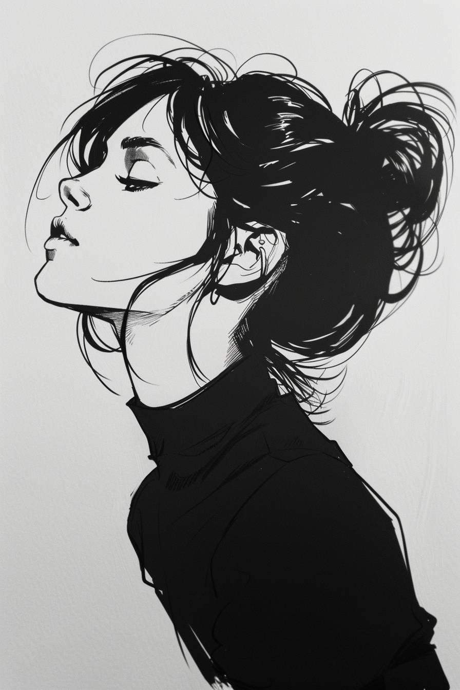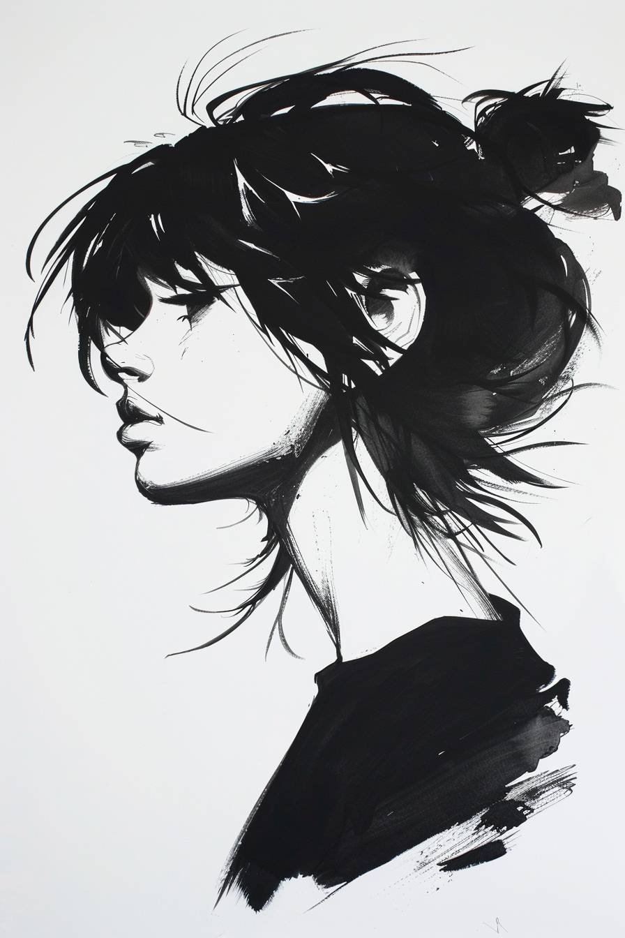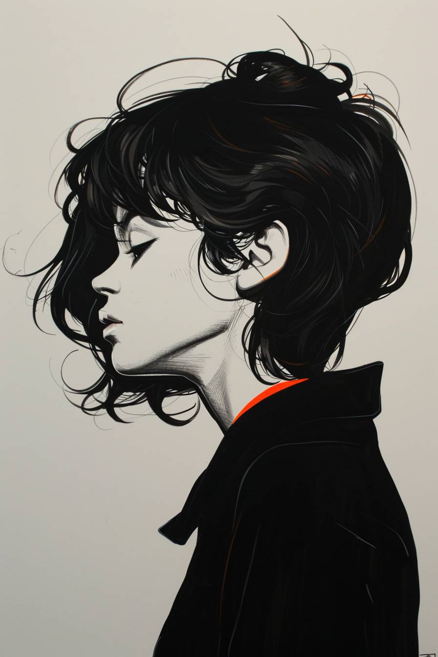 in style of Ilya Kuvshinov, character, ink art, side view --ar 2:3 --v 6.0