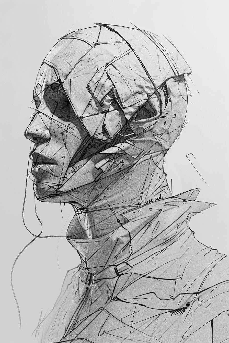 in style of Peter Eisenman, character concept design, half body --ar 2:3 --v 6.0