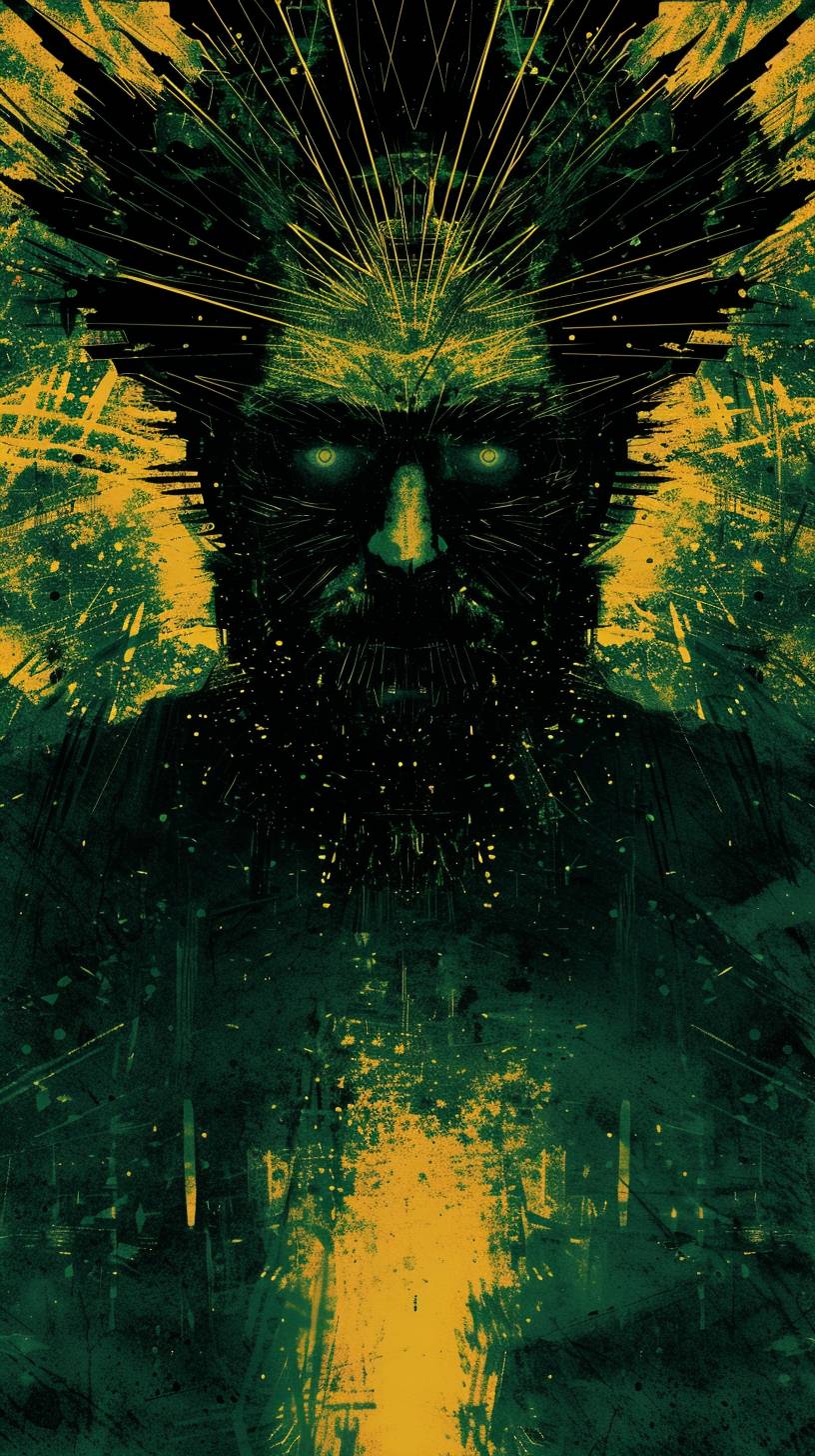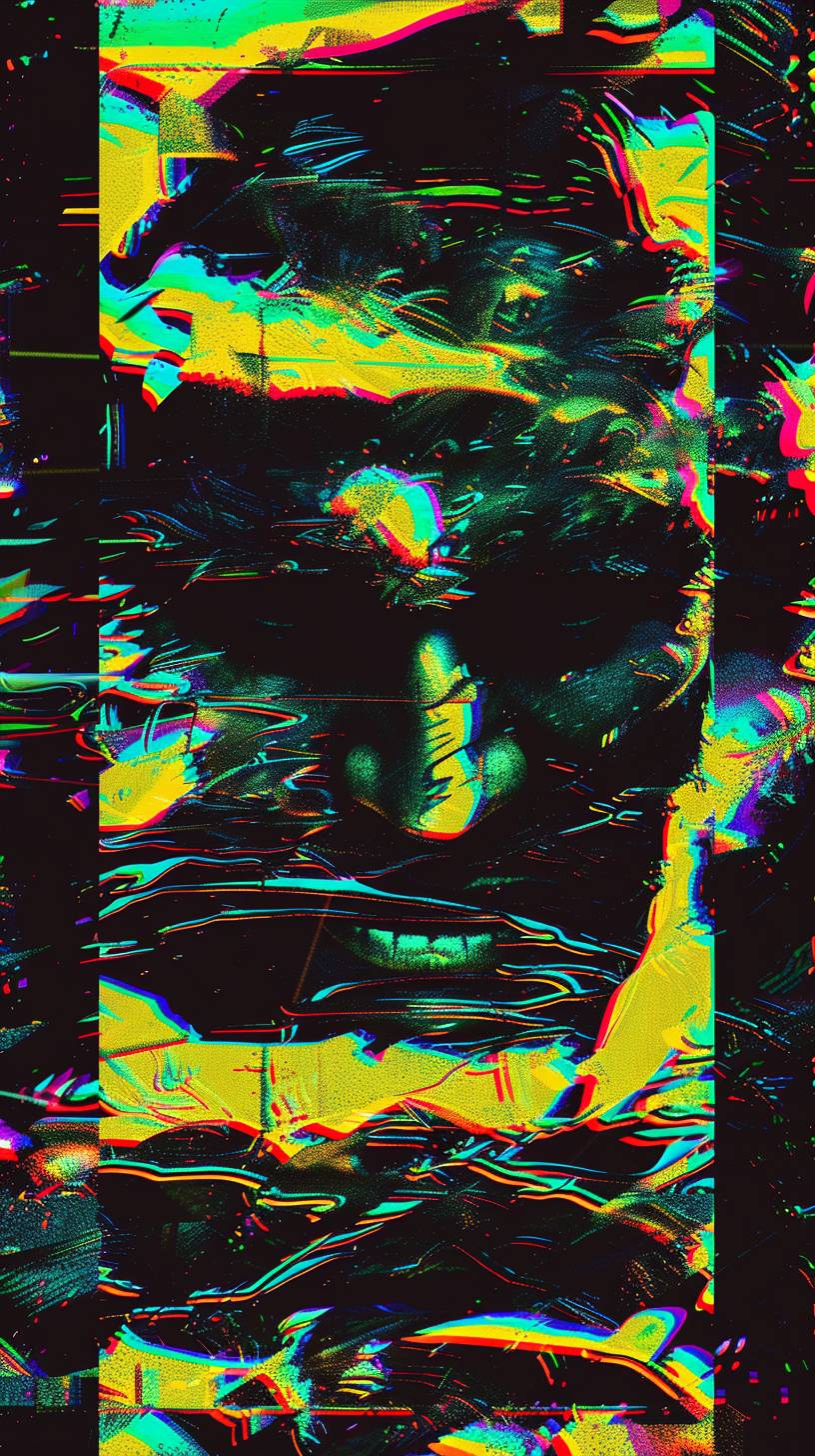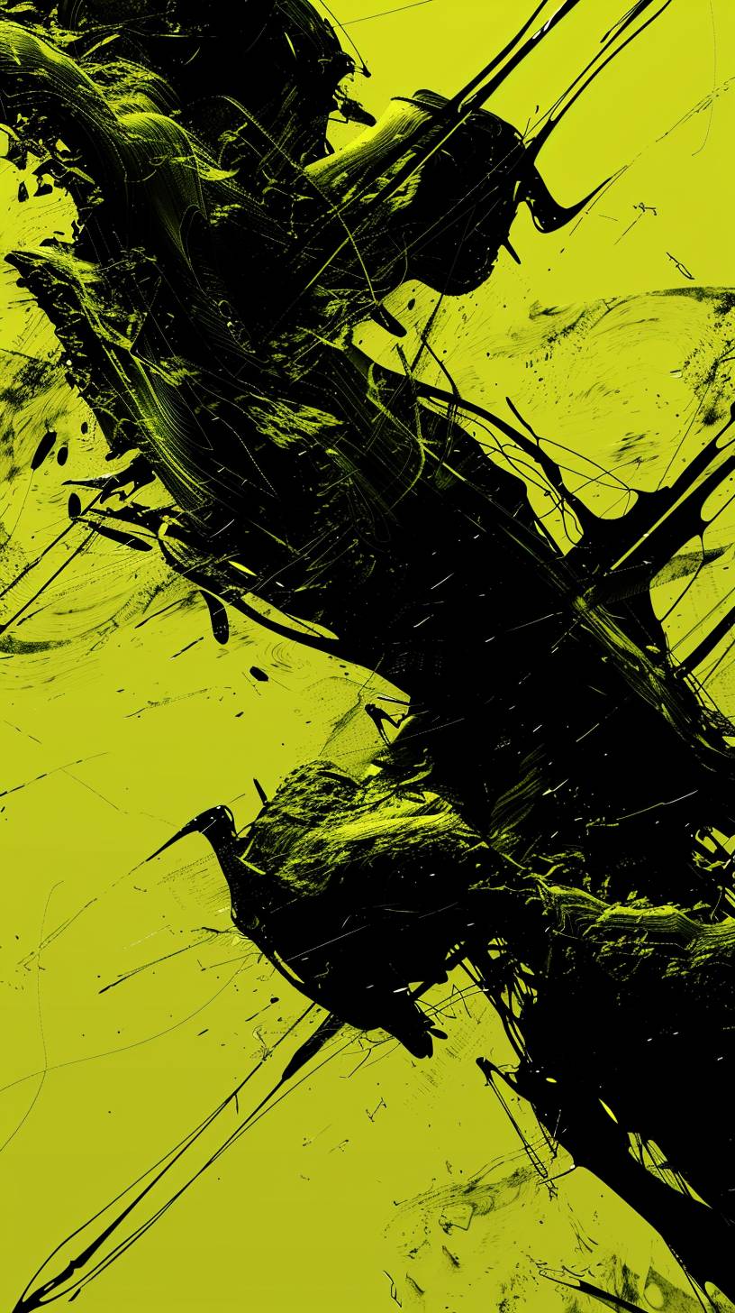 an animated image of yellow, black and green colours making lines, in the style of deathcore, webcam photography, distorted figures, psychedelicpunk, #vfxfriday, holga 120n, psychedelic artwork --chaos 20 --ar 14:25 --style raw --v 6.0