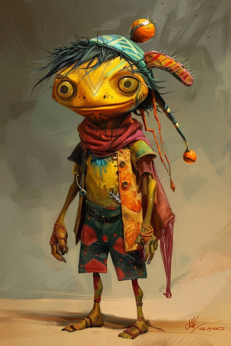 in style of Osgemeos, character concept design, half body --ar 2:3 --v 6.0