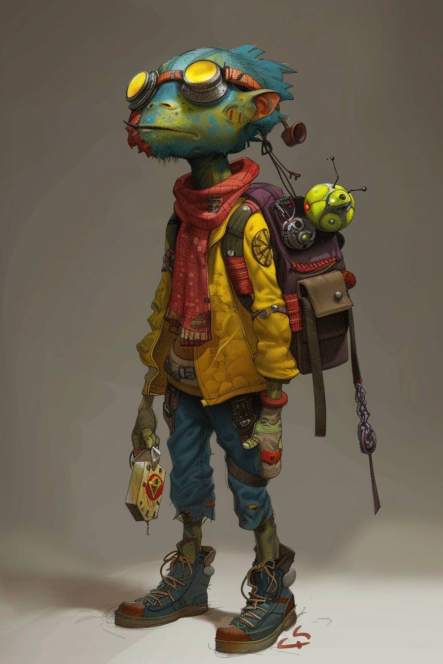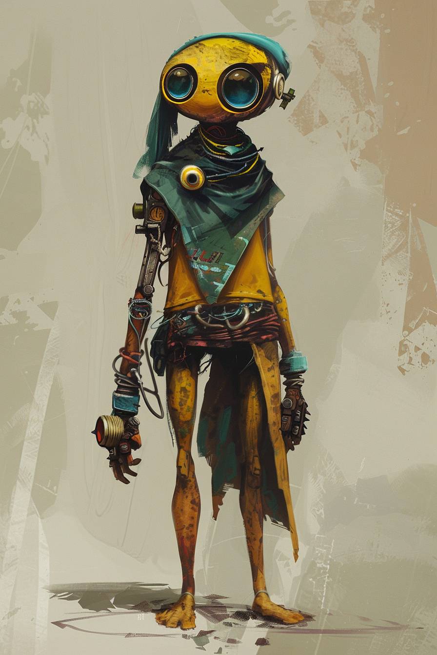 Osgemeosスタイルのキャラクターコンセプトデザイン、ハーフボディ