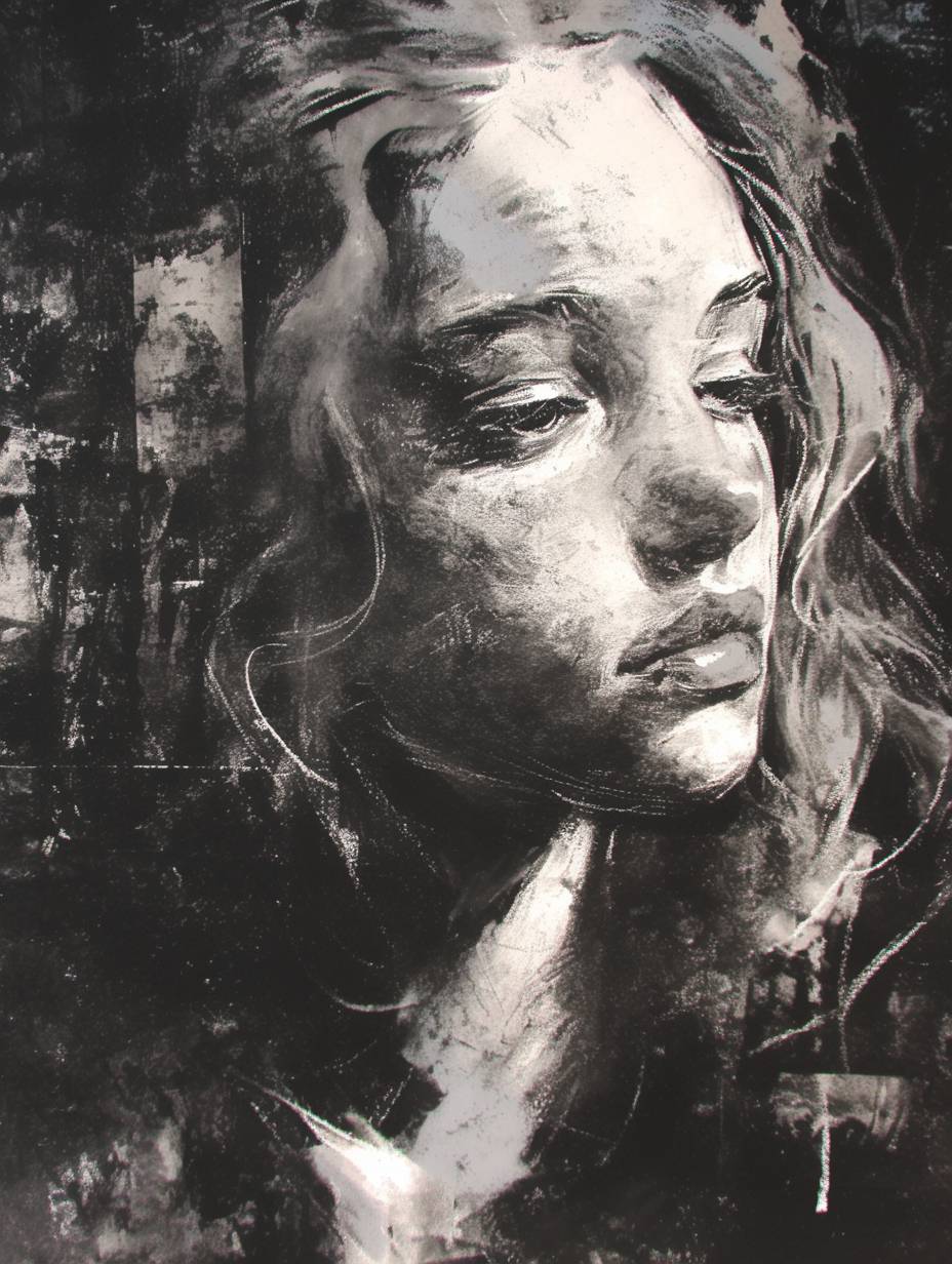 [主題]のモノトーンチョークポートレート、チョークテクスチャ、チョークアート