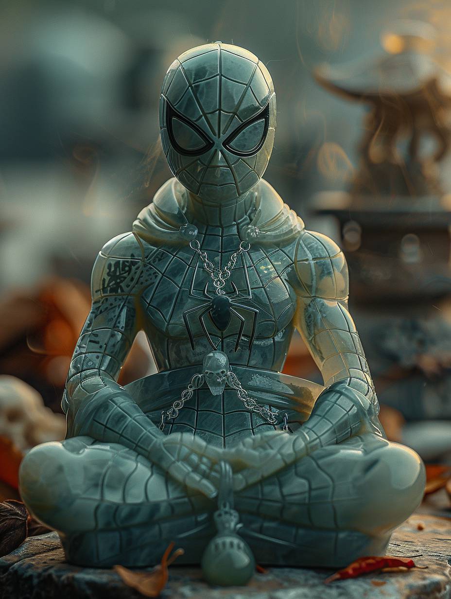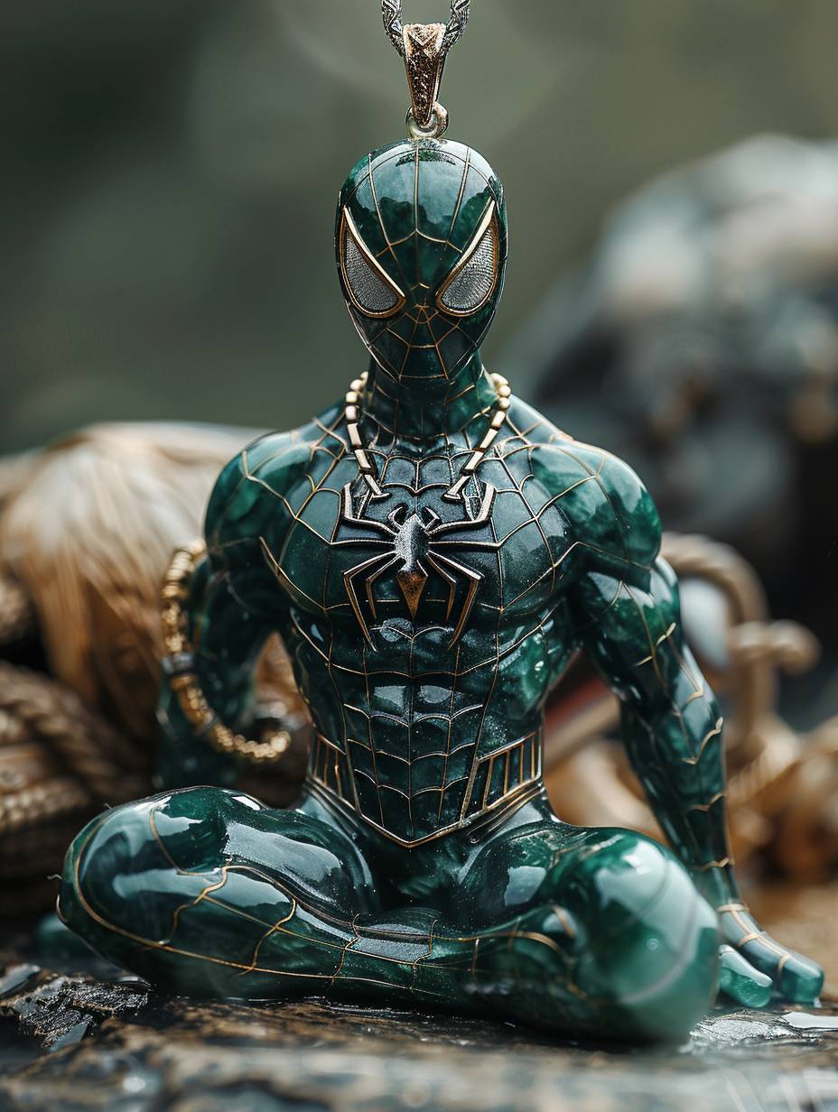 Light shines through the translucent green, Marvel superhero Spider-Man classic action, precise details, high-quality jadeite jade pendant relief, carved from high-grade jadeite, meticulously crafted, exquisite details, beautiful lines, the translucent jade material adds a charming luster and transparency to this piece, while the CG rendering highlights the richness and complexity of the design. This masterpiece is a true testament to the skill and artistry of its creator, and an excellent addition to any collection. --ar 3:4 --stylize 500 --v 6.0