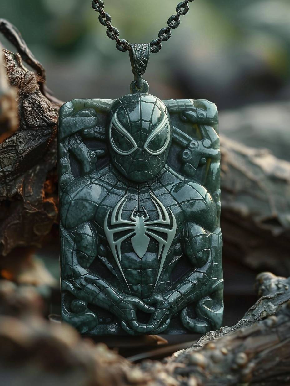 高品質な翡翠で彫られたスパイダーマンのペンダント、精巧。