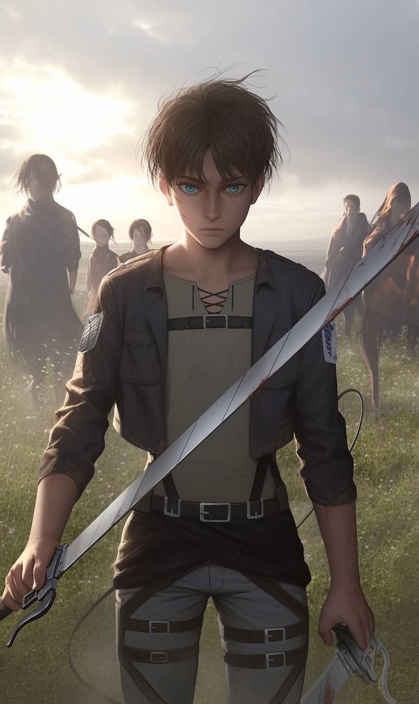 Attack on Titan. --sref 3455314643 --niji 6 --ar 3:5