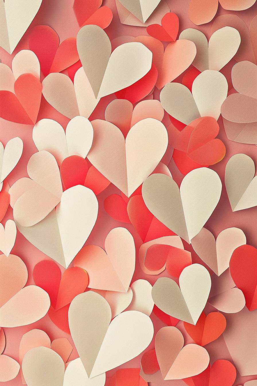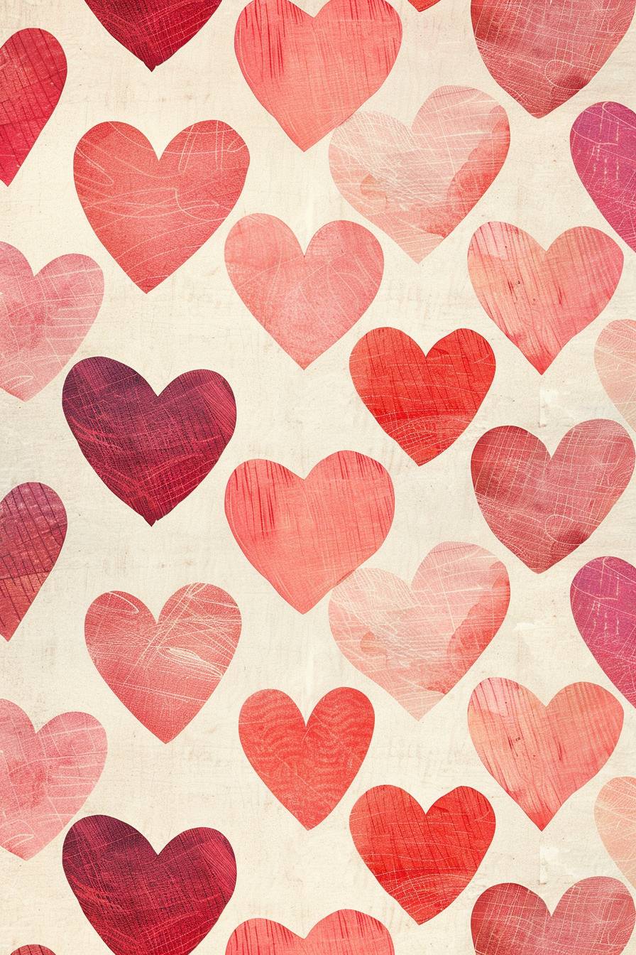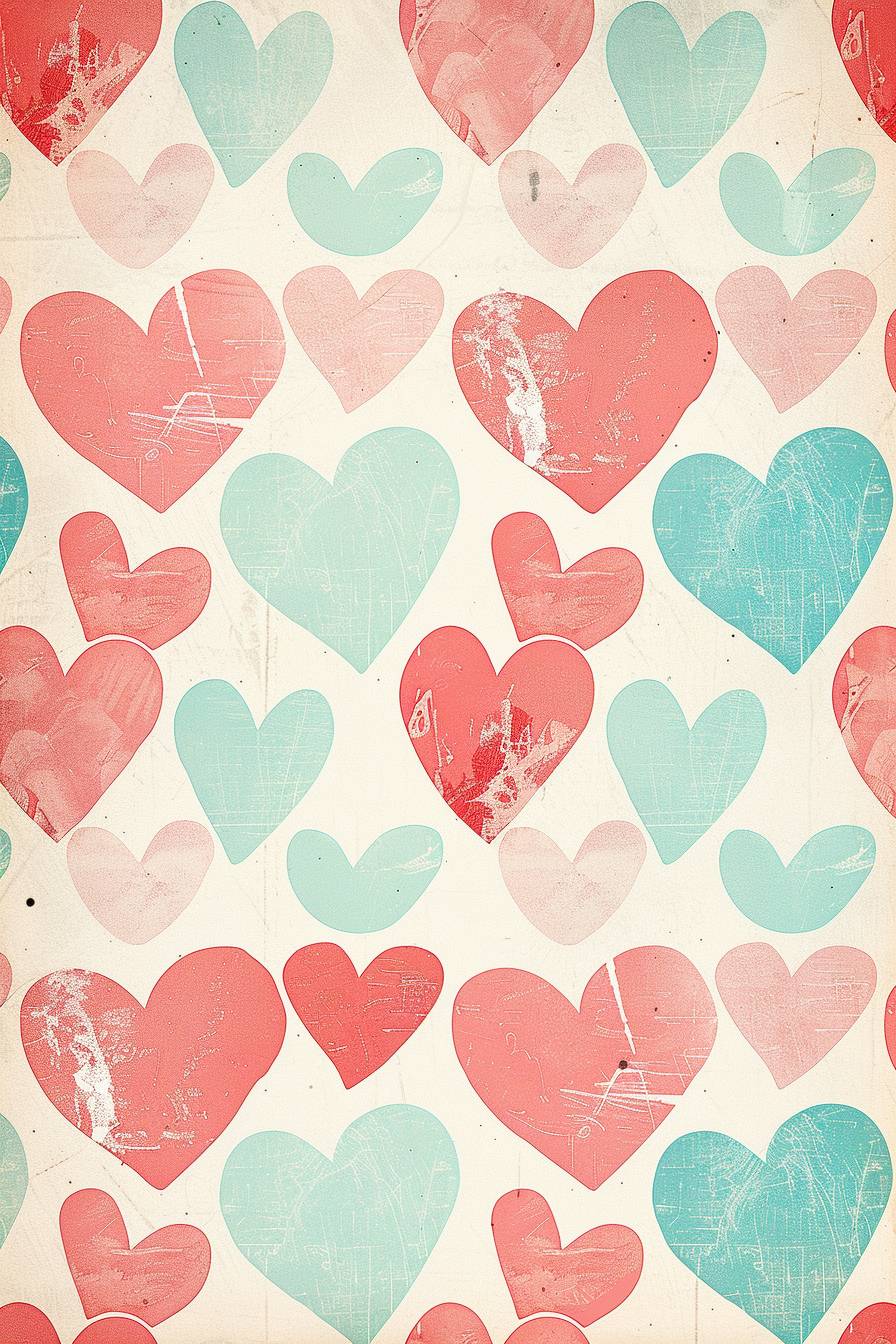 create a Cute Retro very detailed illustration of hearts overlapping solid pastel background pink red white --ar 2:3 --v 6.0