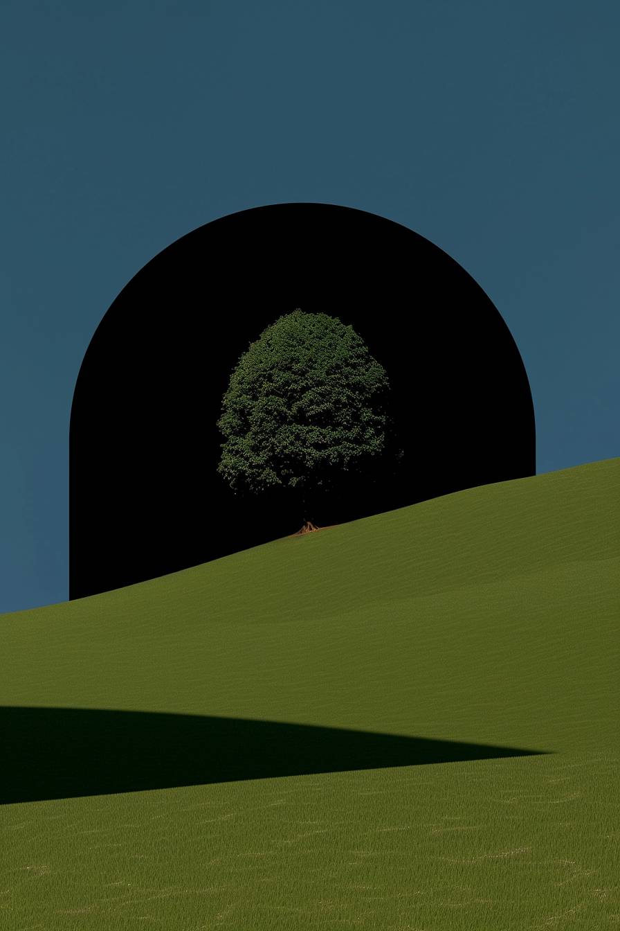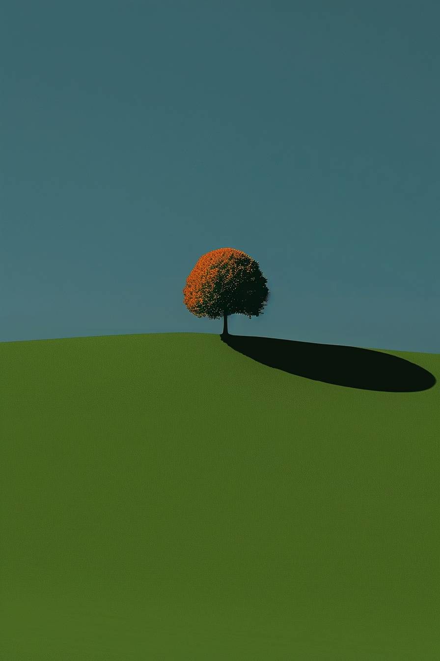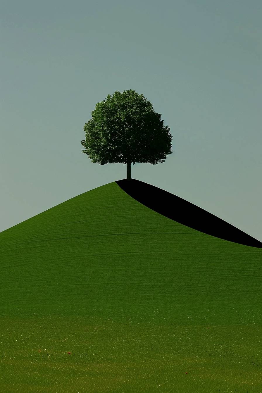 tree on a hill in a field. Sky is blue. Tree is green. Field is green. Long grass --chaos 30 --ar 2:3 --style raw --sref 1489794412 --personalize wzwou9x --stylize 500 --v 6.0
