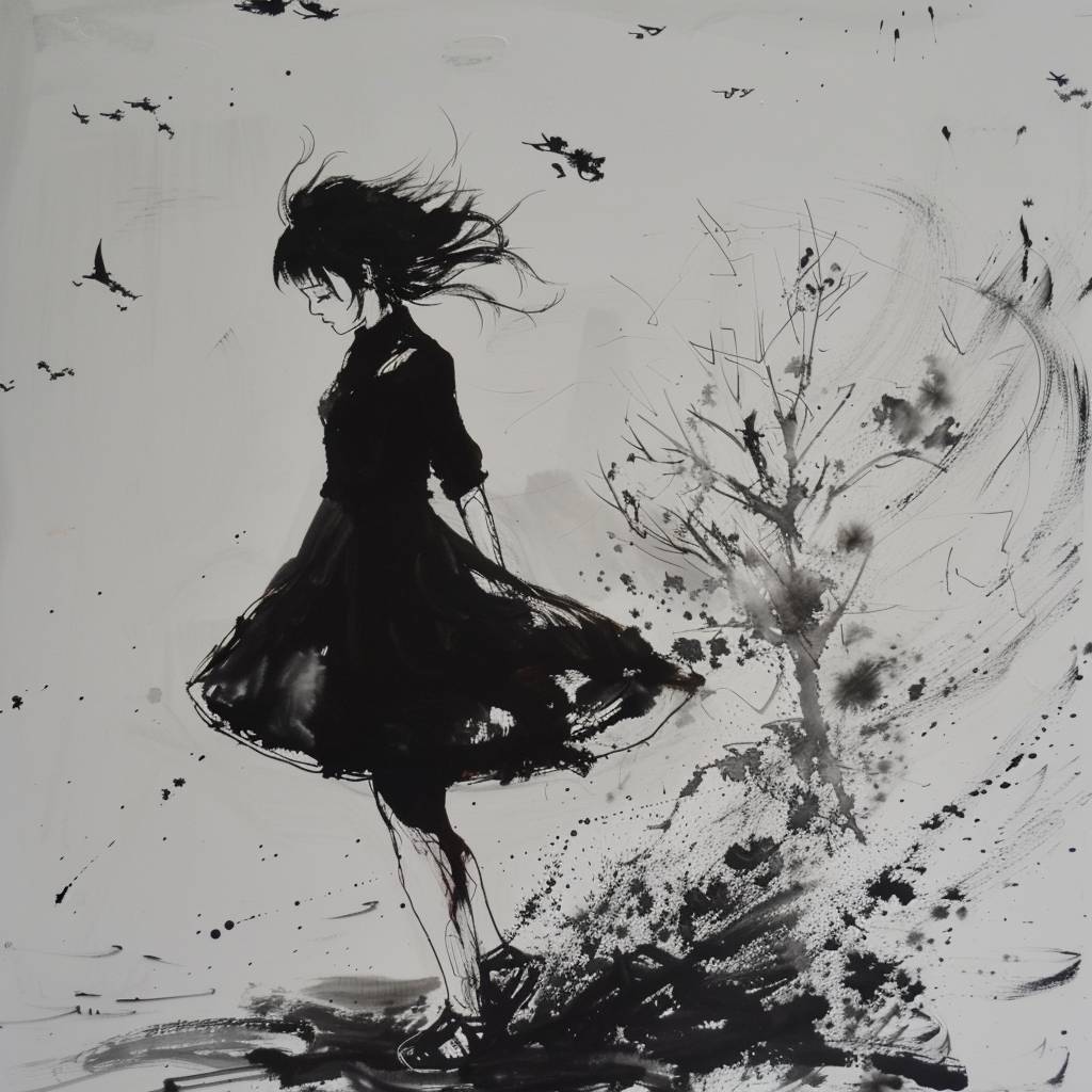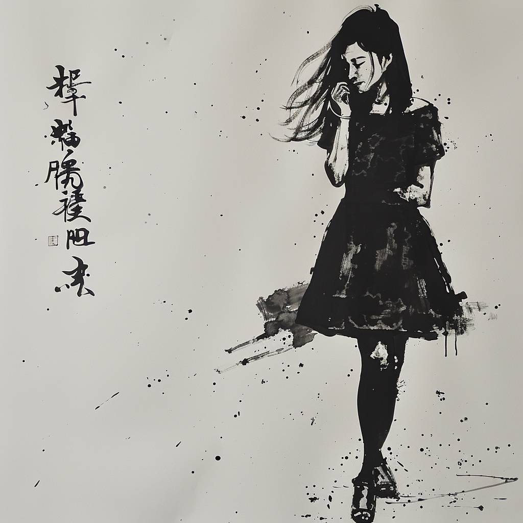 sumi ink painting,a girl,I want to be loved, whether a lot or just a little. And I want to love. I want to be kind. I wanted to be honest.Because I already have enough coldness.I want to be warm. Just warm.(short shift dress),random pose, --v 6.0