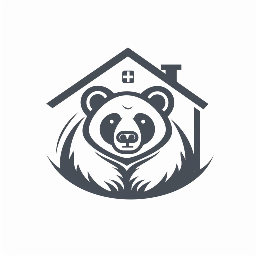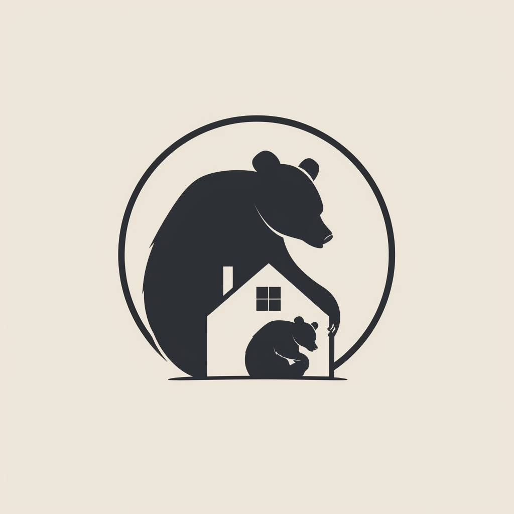 Logo Design. A Simple Bear in a House Logo. Minimalist. White Background. --ar 1:1 --stylize 250 --v 6.0