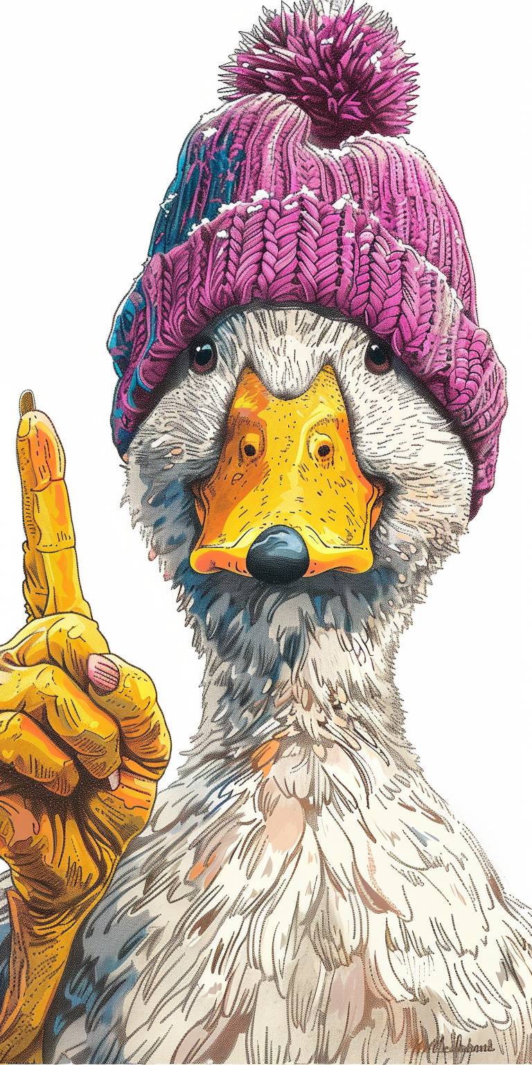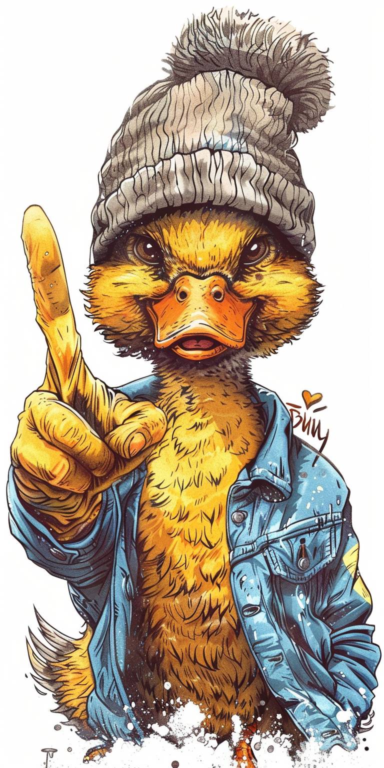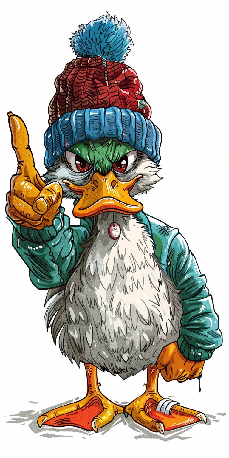 middle finger but as a duck with a beanie hat on the middle finger clipart --ar 1:2 --stylize 250 --v 6.0