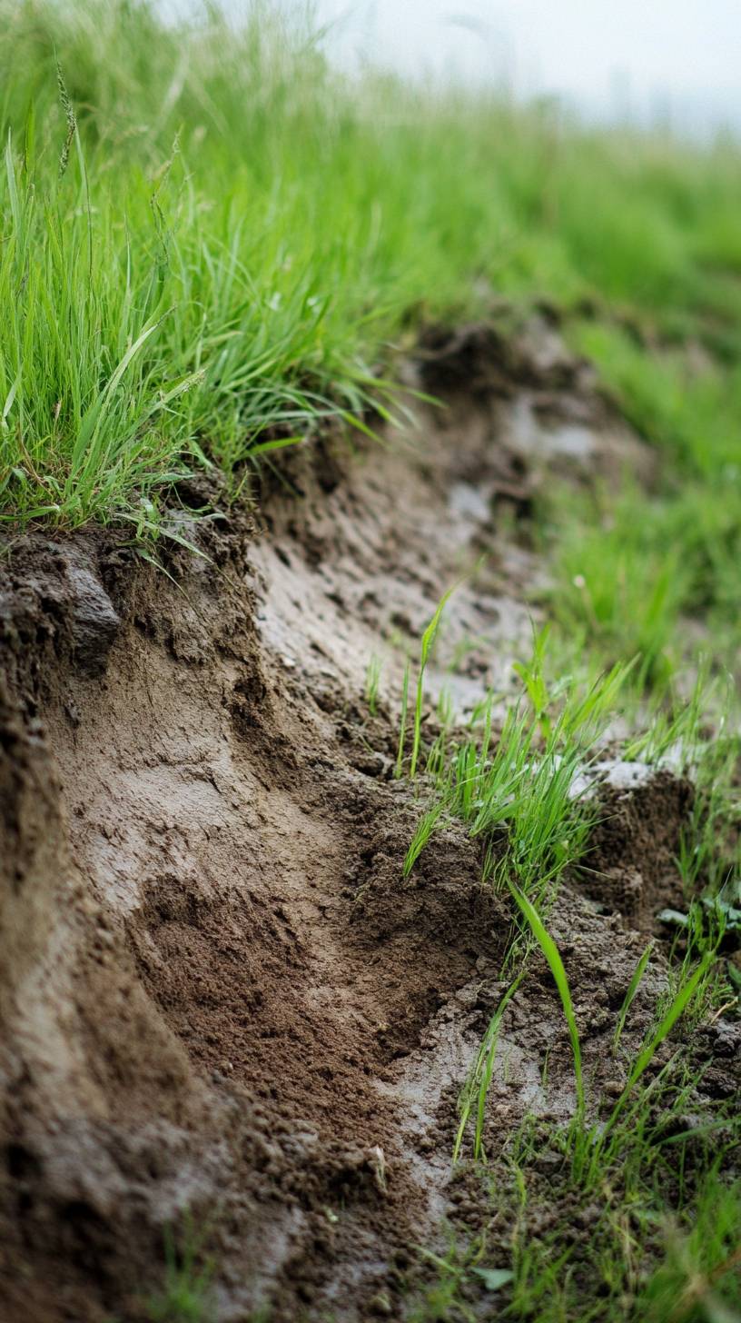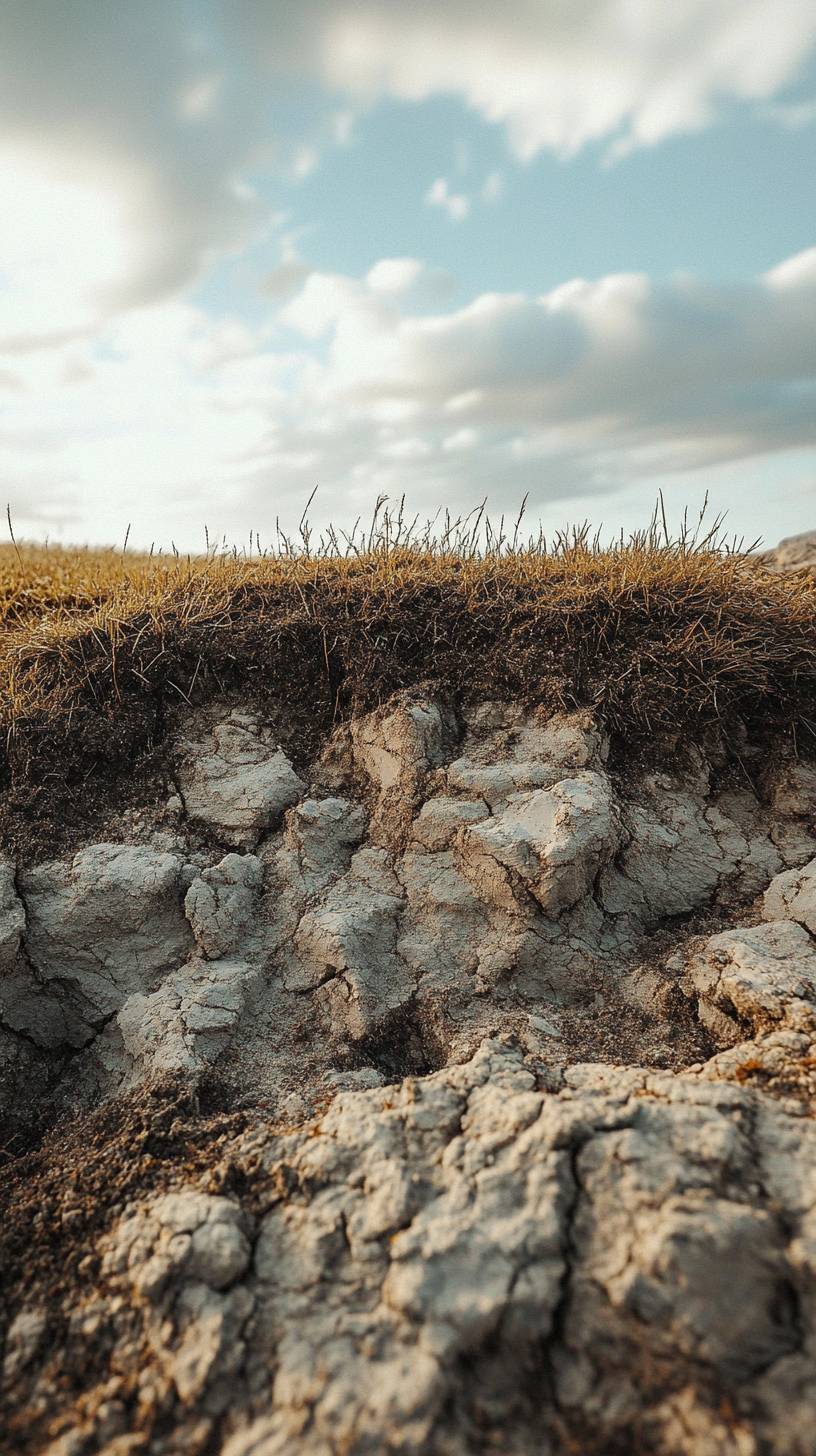 photography of eroded soils, you can Still see grass --ar 9:16 --v 6.1