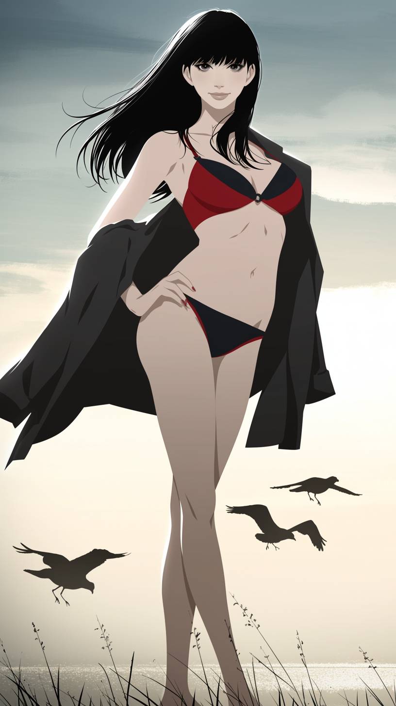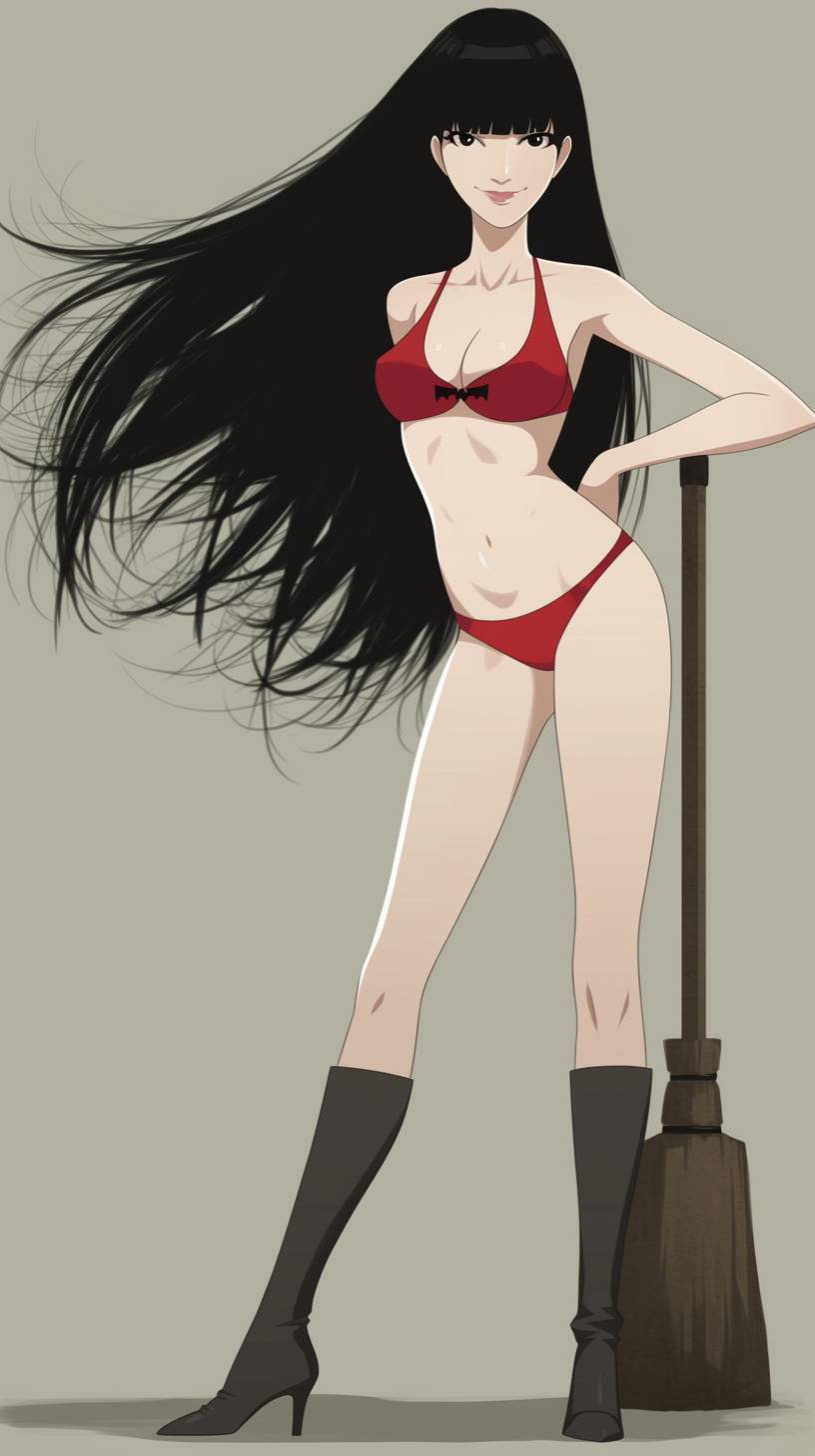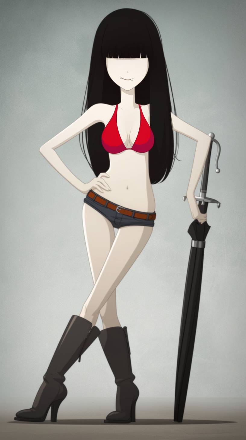 A simple drawing of Vampirella, in the style of Allie Brosh with simple lines, flat colors and a stick figure, minimalistic, simple background --ar 9:16 --style raw --sref 2581773485 --niji 6