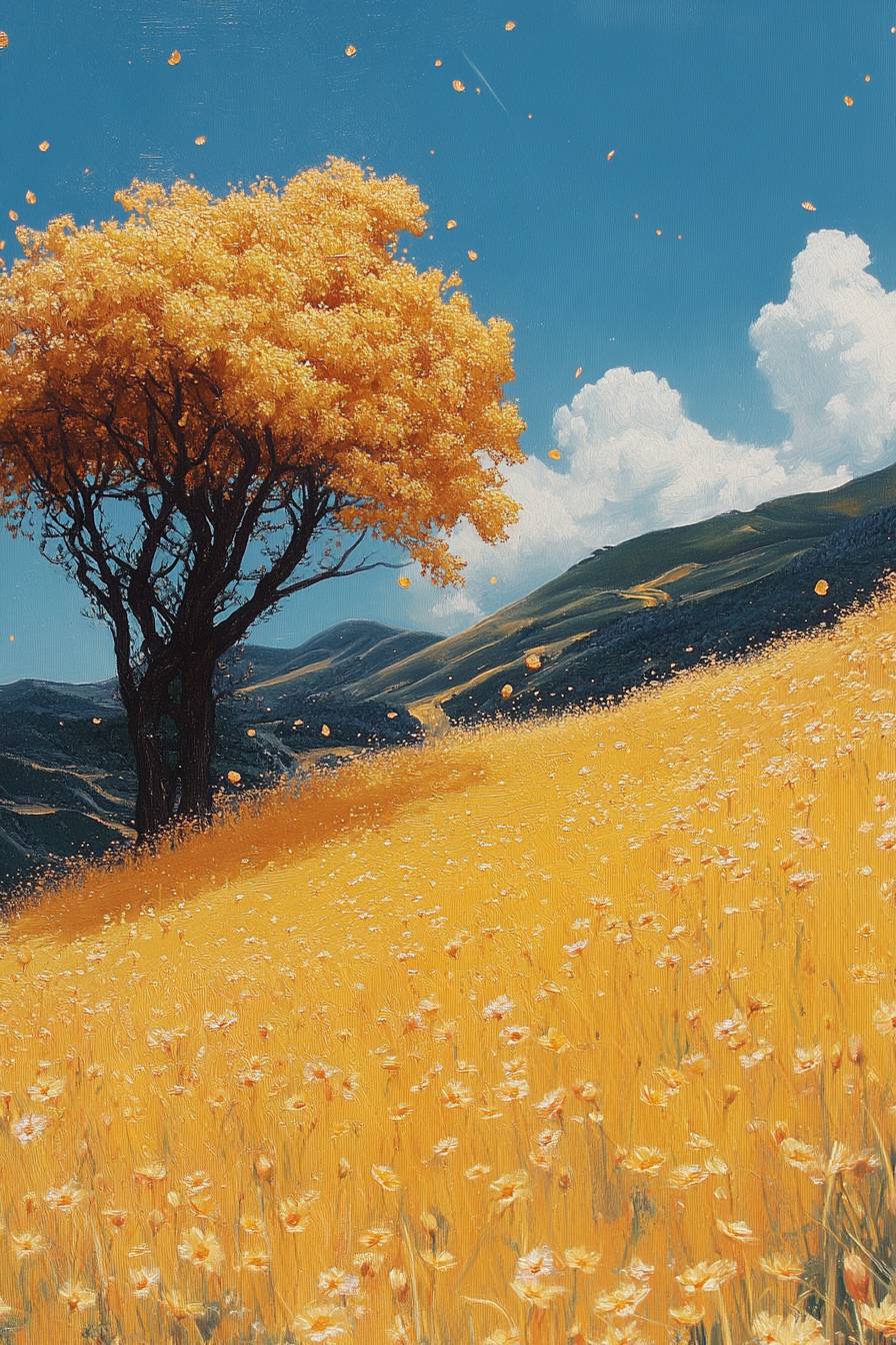 yellow wind, may light --sref 111307734 --stylize 1000 --ar 2:3 --v 6.1