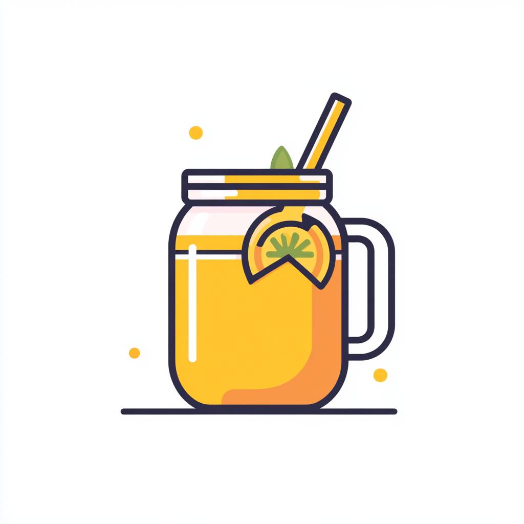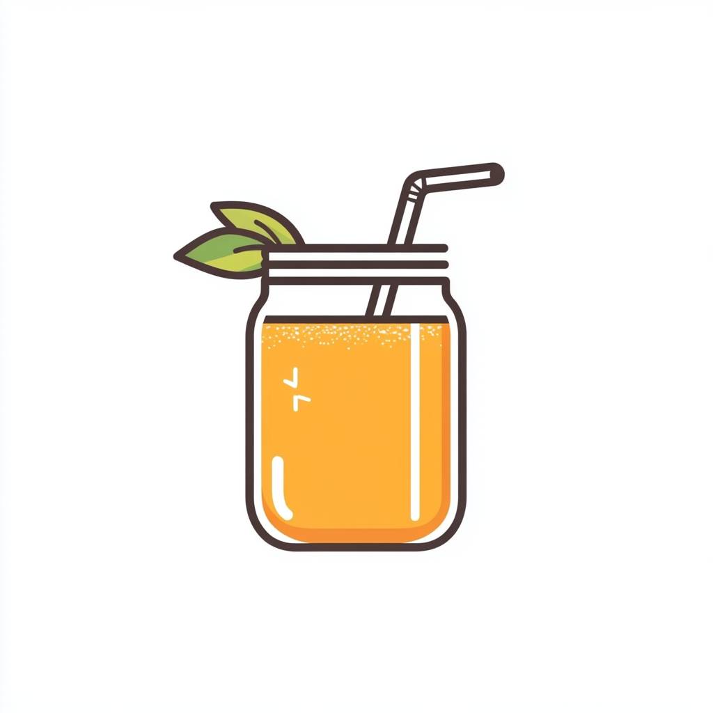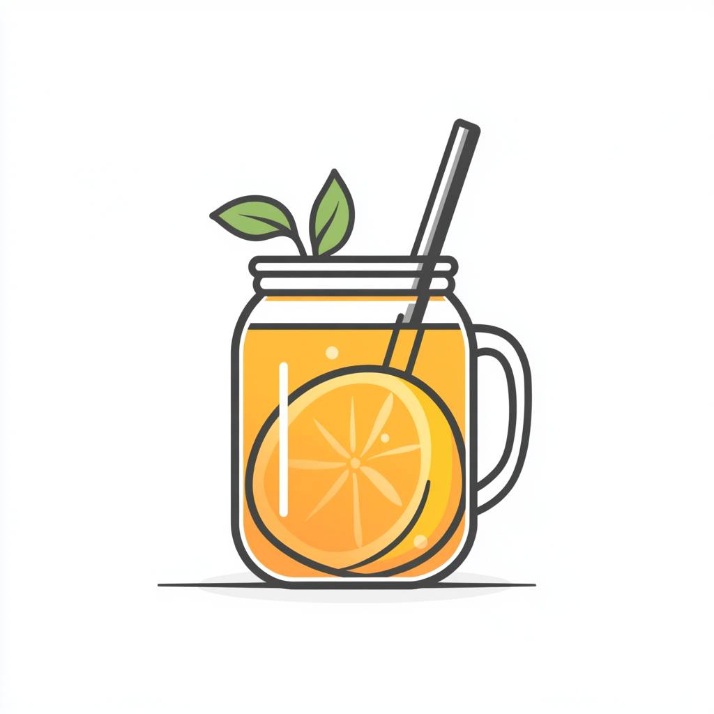 A flat vector logo of an orange juice in a mason jar with a straw, with a simple and minimalistic design on a white background in the line art style with clean lines and professional quality at a high resolution with professional color grading and soft shadows without contrast and with sharp details in a professional photographic style. --v 6.1
