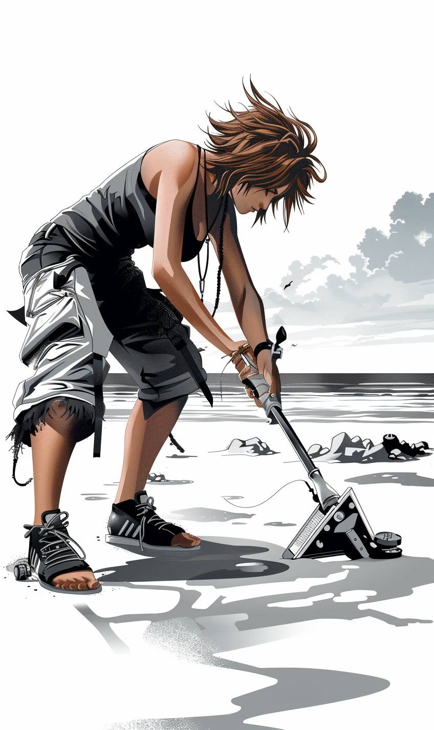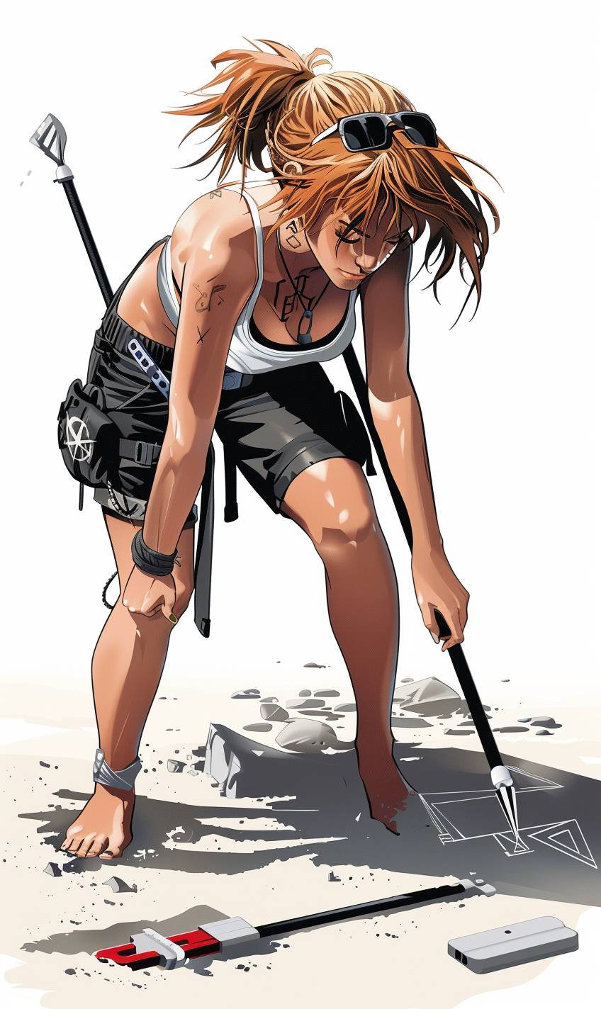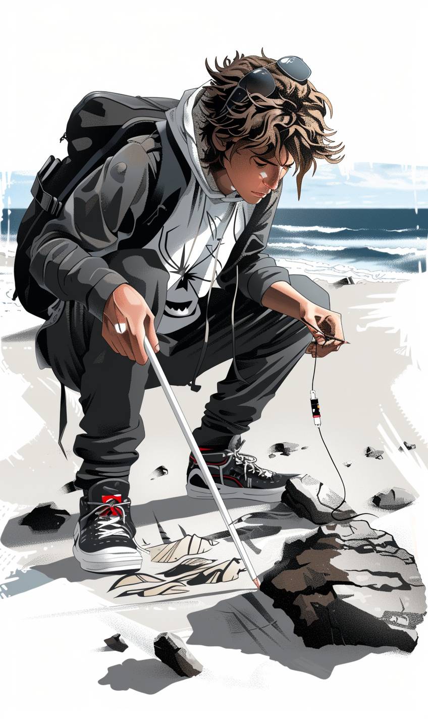 Sora is drawing on the beach with a stick. --ar 3:5 --sref 48 --v 6.0