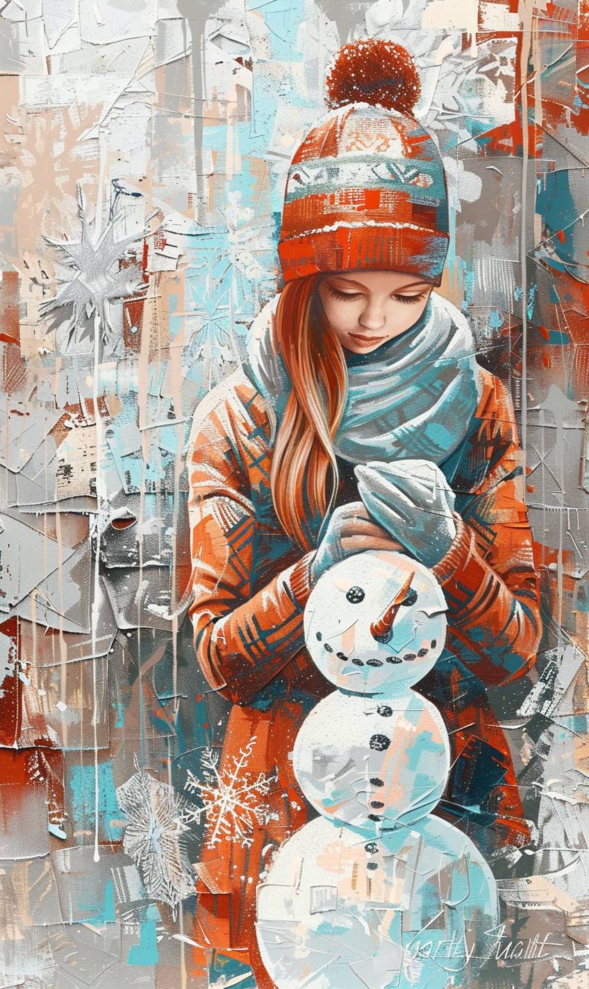 Yumi is building a snowman in winter. --ar 3:5 --sref 88 --v 6.0