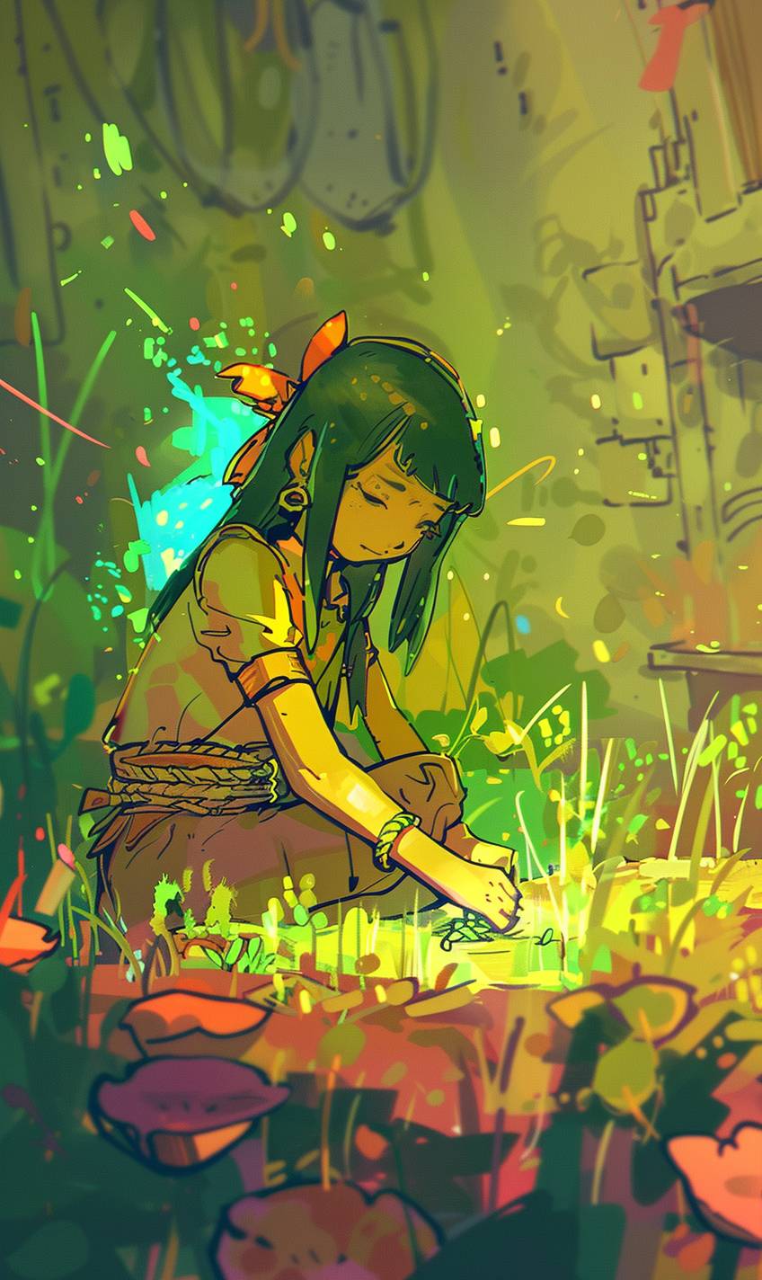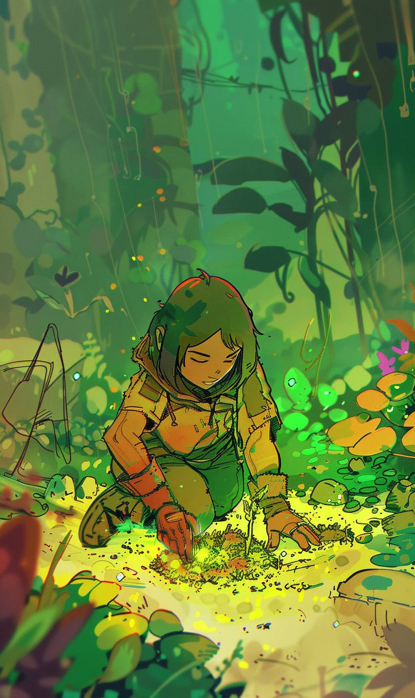 Tsubasa is planting seeds in a garden. --ar 3:5 --sref 152 --v 6.0