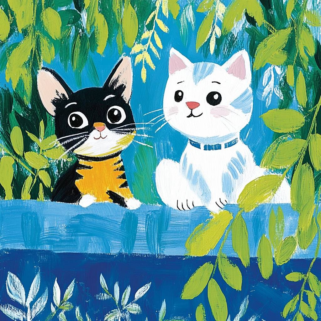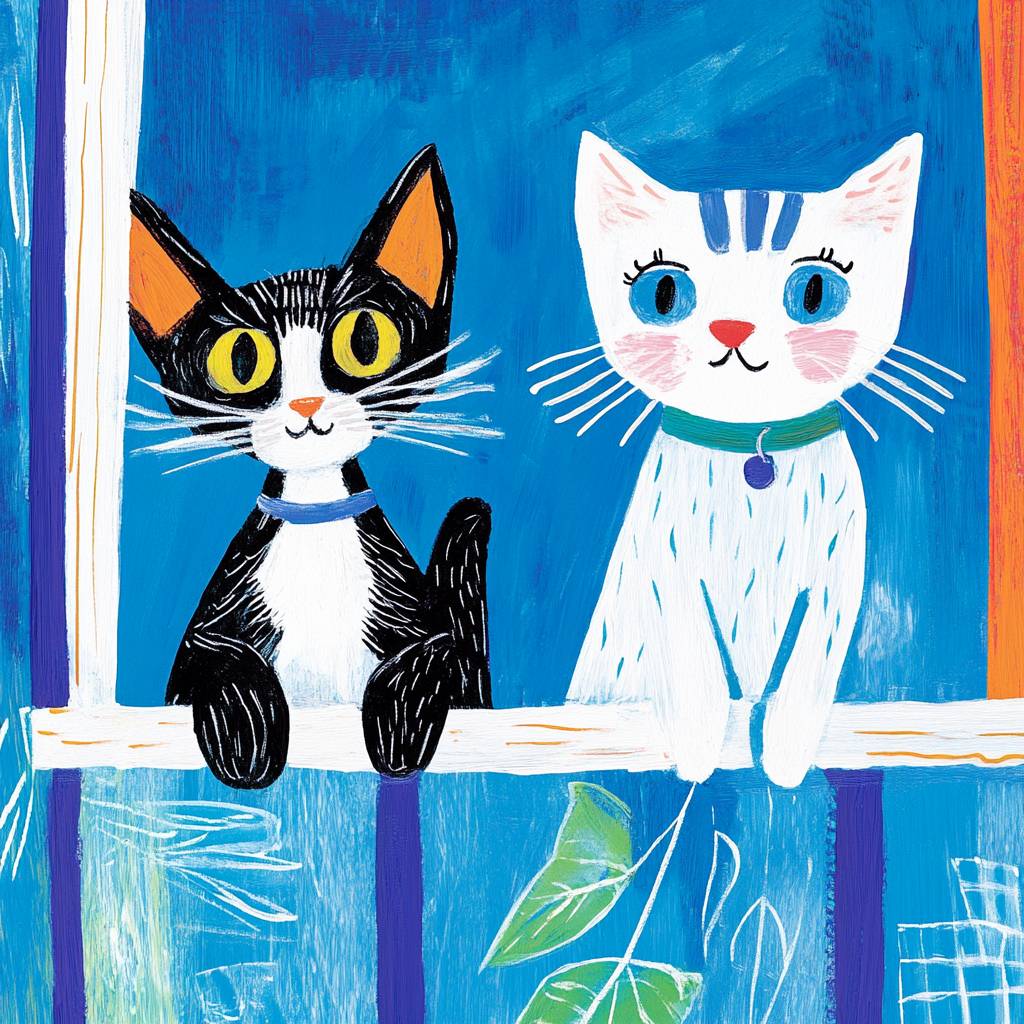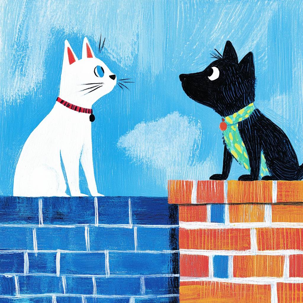A cat and a puppy on the top of a ledge --sref 646371579 --v 6.1