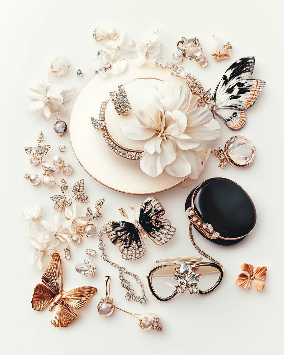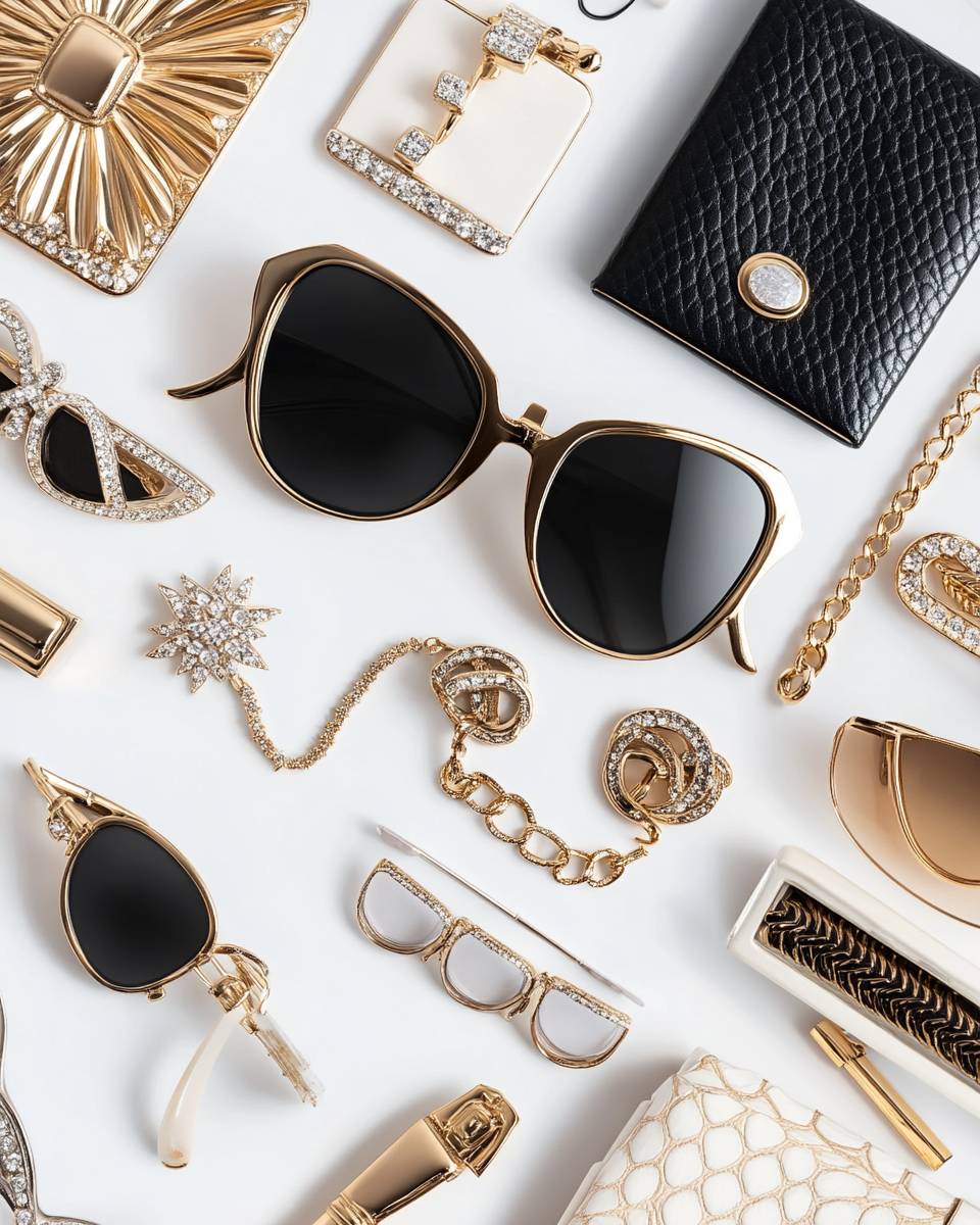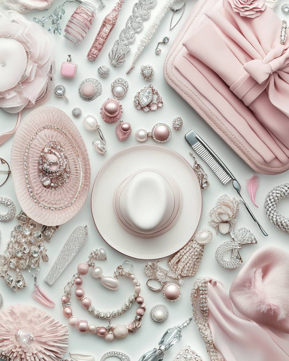 composition of fashion accessories, white background, professional detailed 8k photo --ar 4:5 --v 6.1