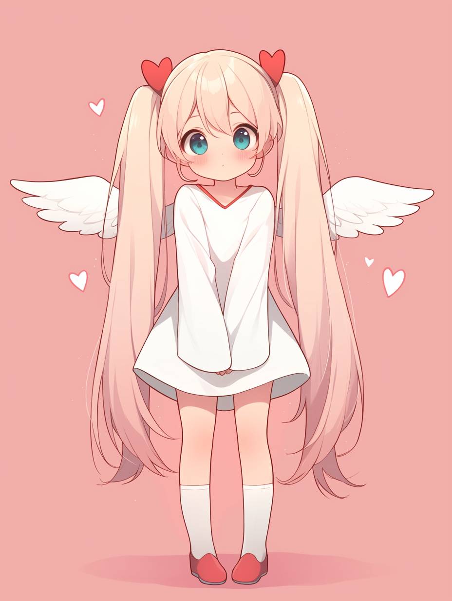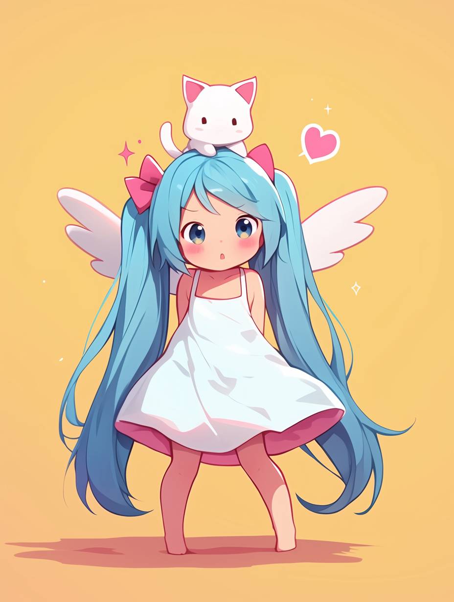 minimalist, cute simple fairy, Hatsune Miku with long hair and little white wing, gambit in front of a yumekawa background, in the style of chibi, --ar 3:4 --sref 1058771094 --niji 6