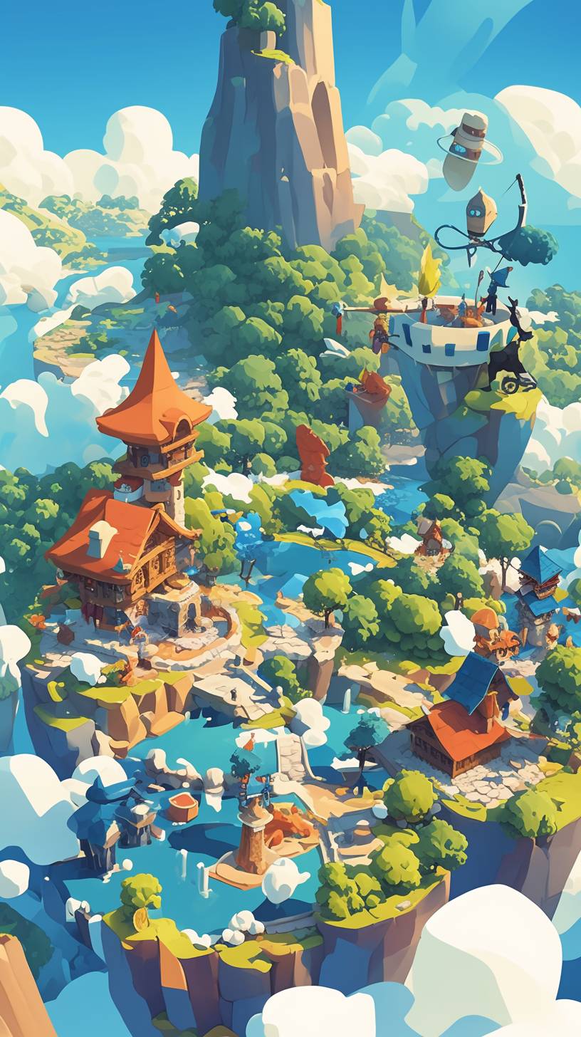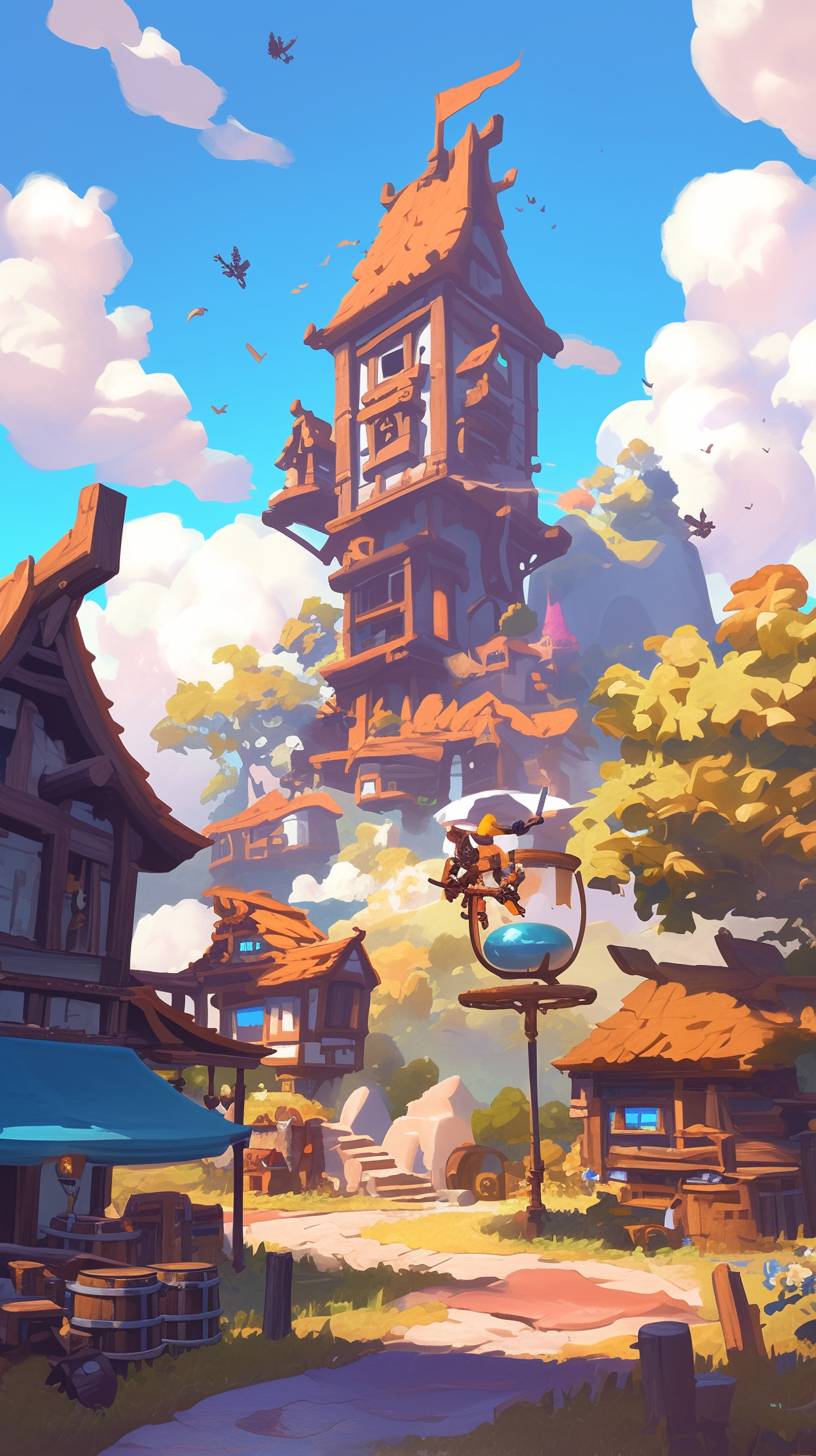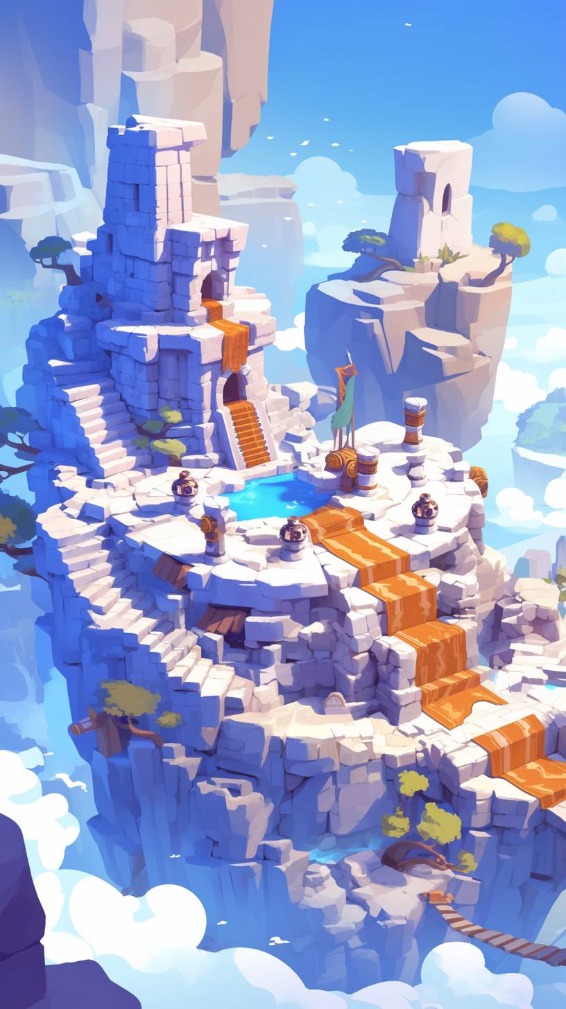 Game Cut-out illustration,Paper carving style, Medieval themes,mobile game map, from the bottom up the road, Mobile tower defense game, defensive tower, defensive tower with crossbow,three-dimensional paper carving,Rocket Tower,Magic Tower,Statue Tower,color block border is clear --ar 9:16 --niji 6