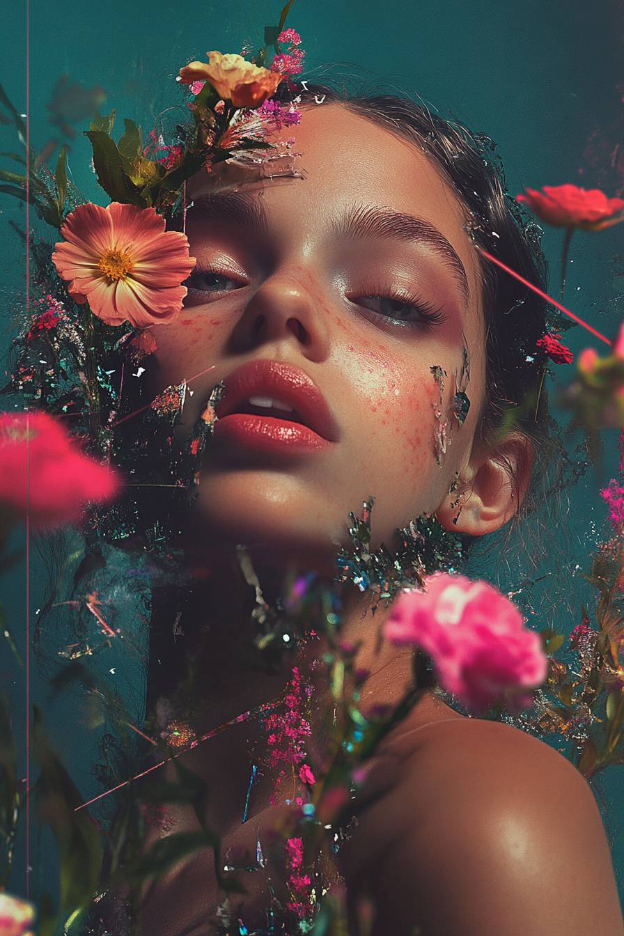 [Dua Lipa]의 유머러스하고 기이한 특징을 강조하는 과장된 초상화. 캐리커처 같은 요소와 장난스러운 과장을 수용하여 주제의 외모에서 유머를 드러냅니다.