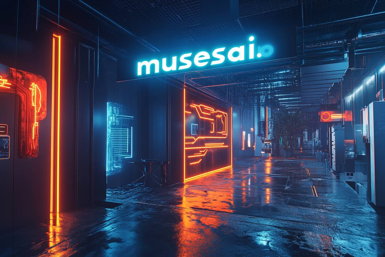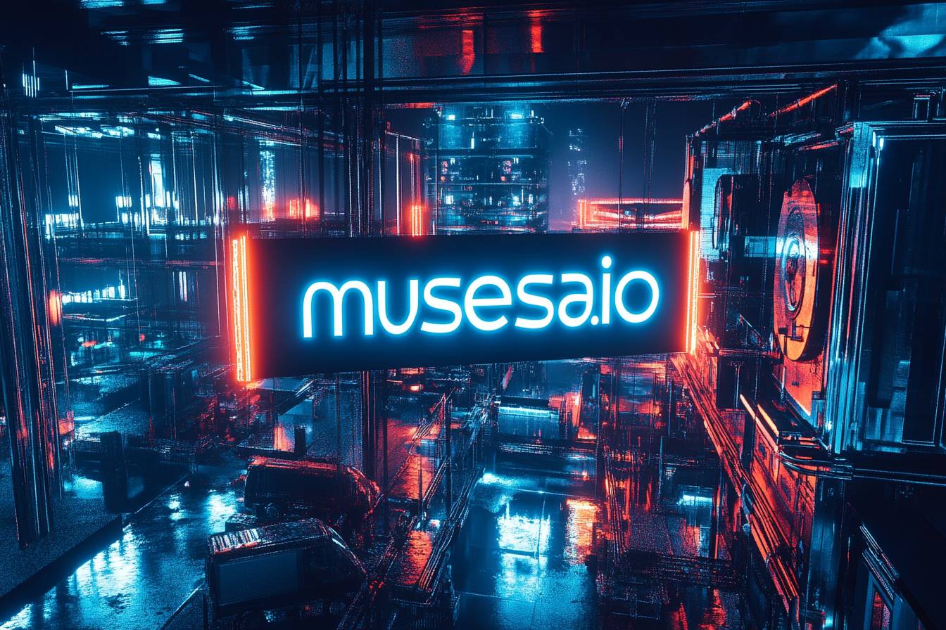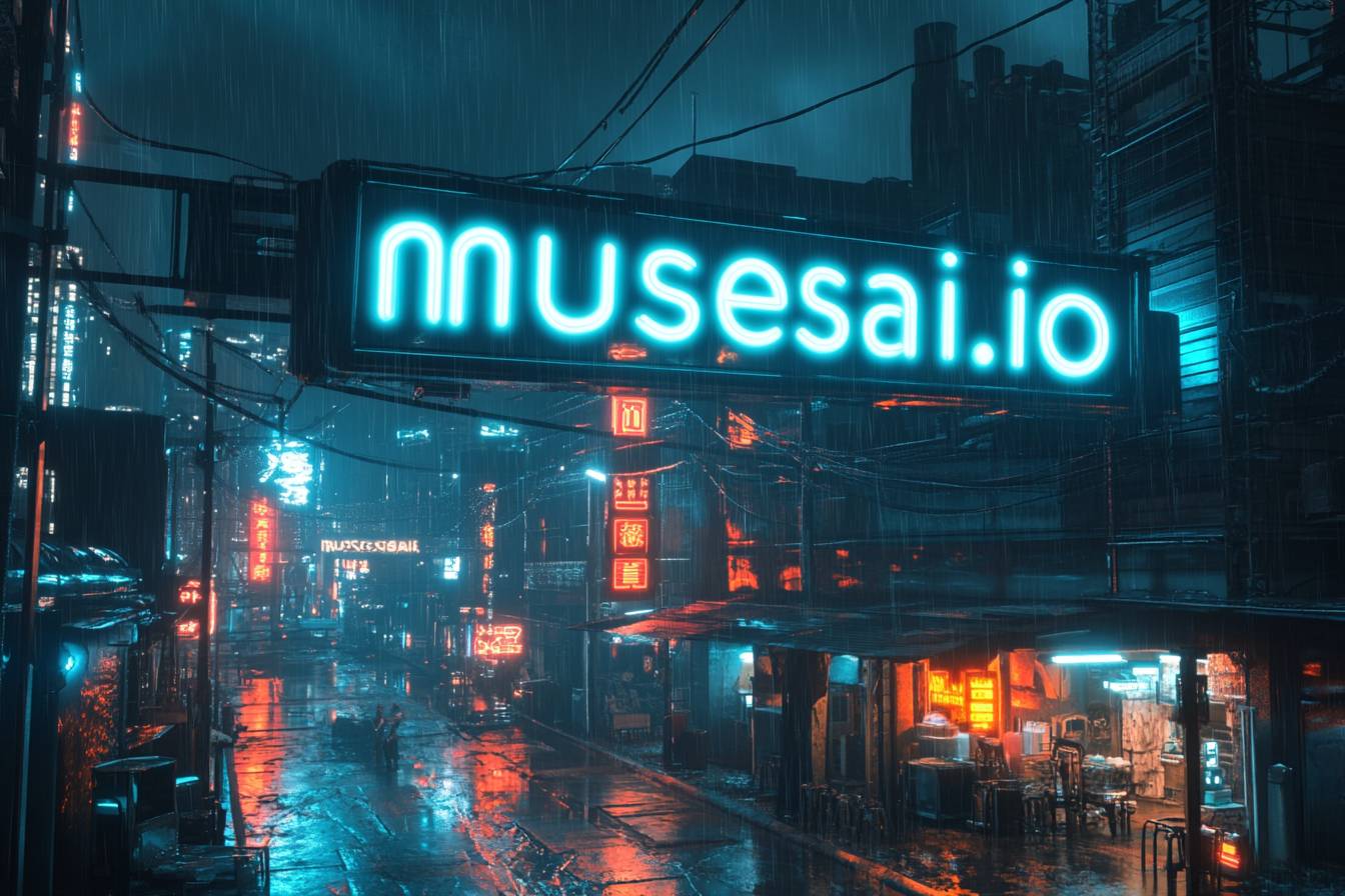 사이버펑크 느와르 홀로그램으로 빛나는 'musesai.io'