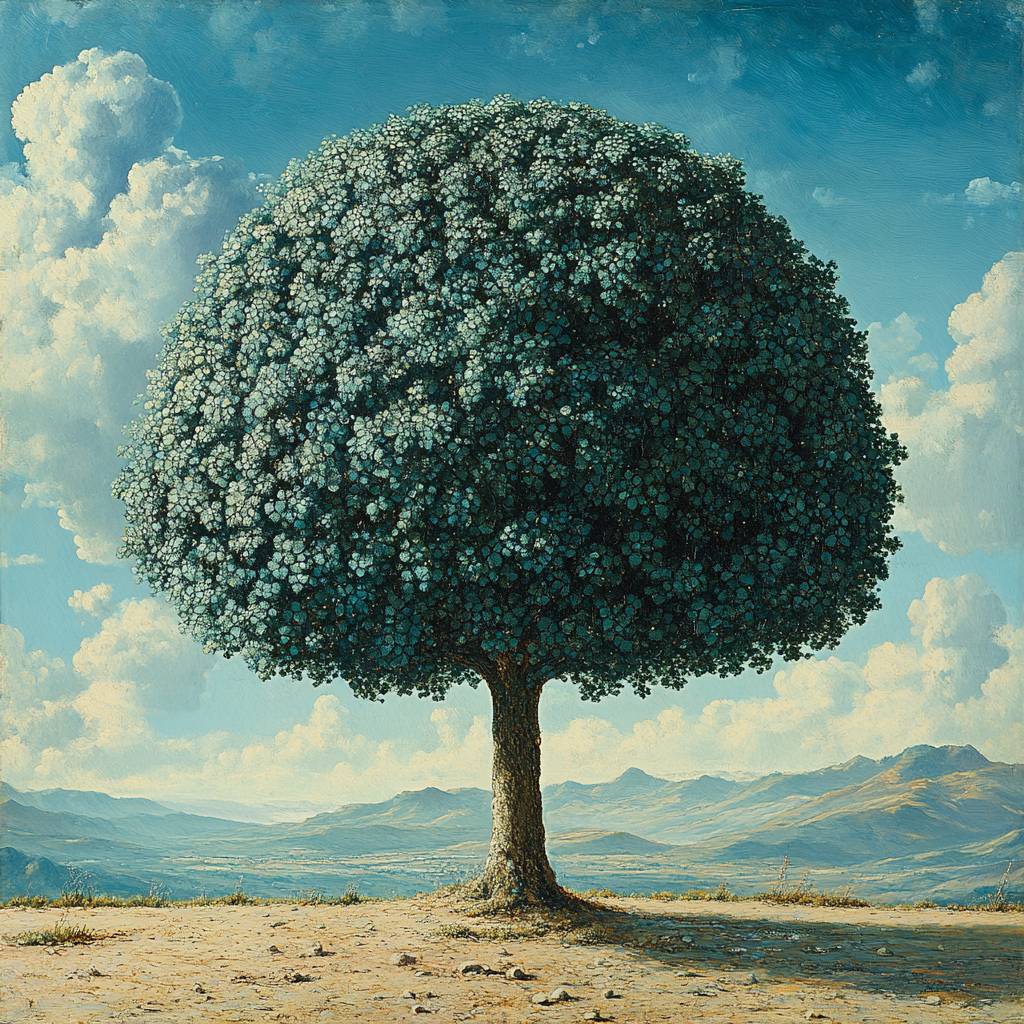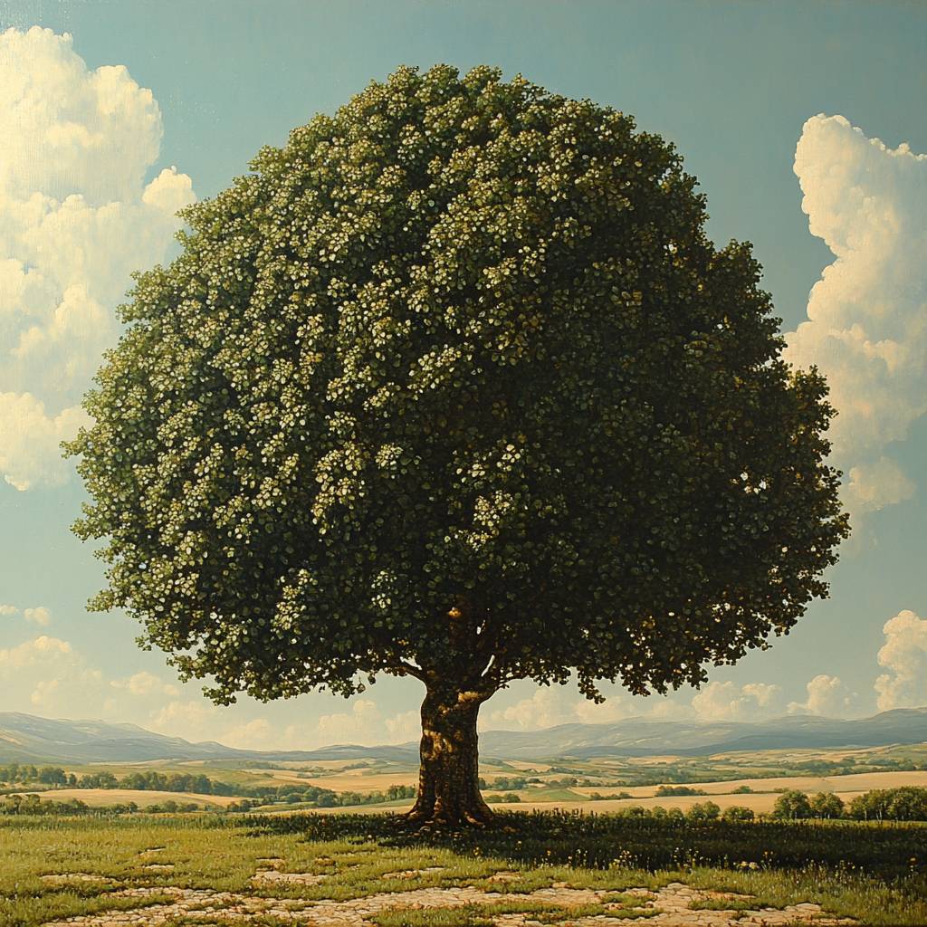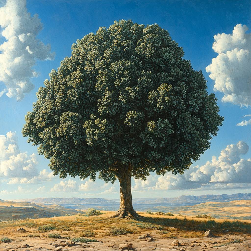 a large full tree in the style of René Magritte --ar 1:1 --stylize 420 --v 6.1