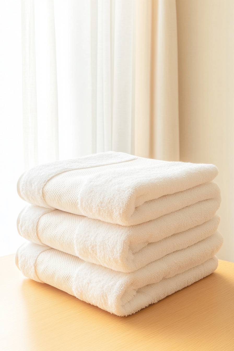 product photography, in muji style, close up shot of the white towels, towels are folded on the wood table, focus on the detail of the towel's texture, set a plain beige background, nature light --c 10 --ar 2:3 --style raw --sref 3622860395 --sw 40 --s 120 --p ndbewqk --v 6.1