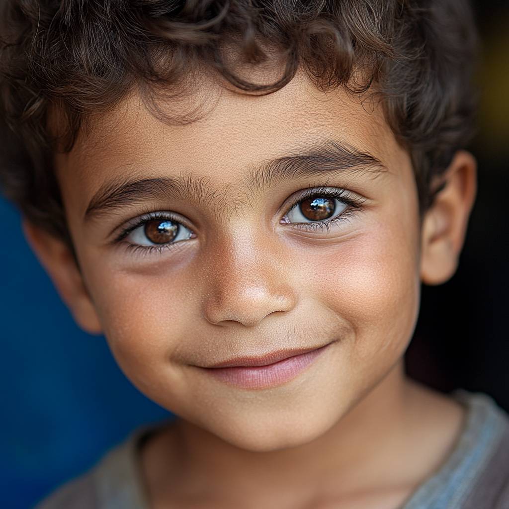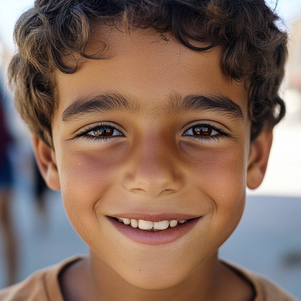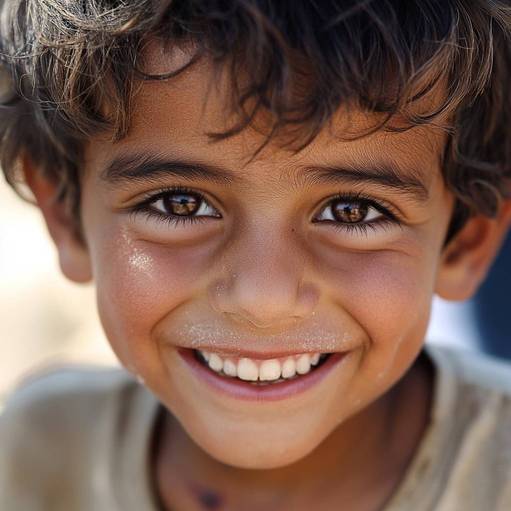 an egyptian boy smiling. 7 year old. looks egyptian features. --personalize s4q9usf --v 6.1