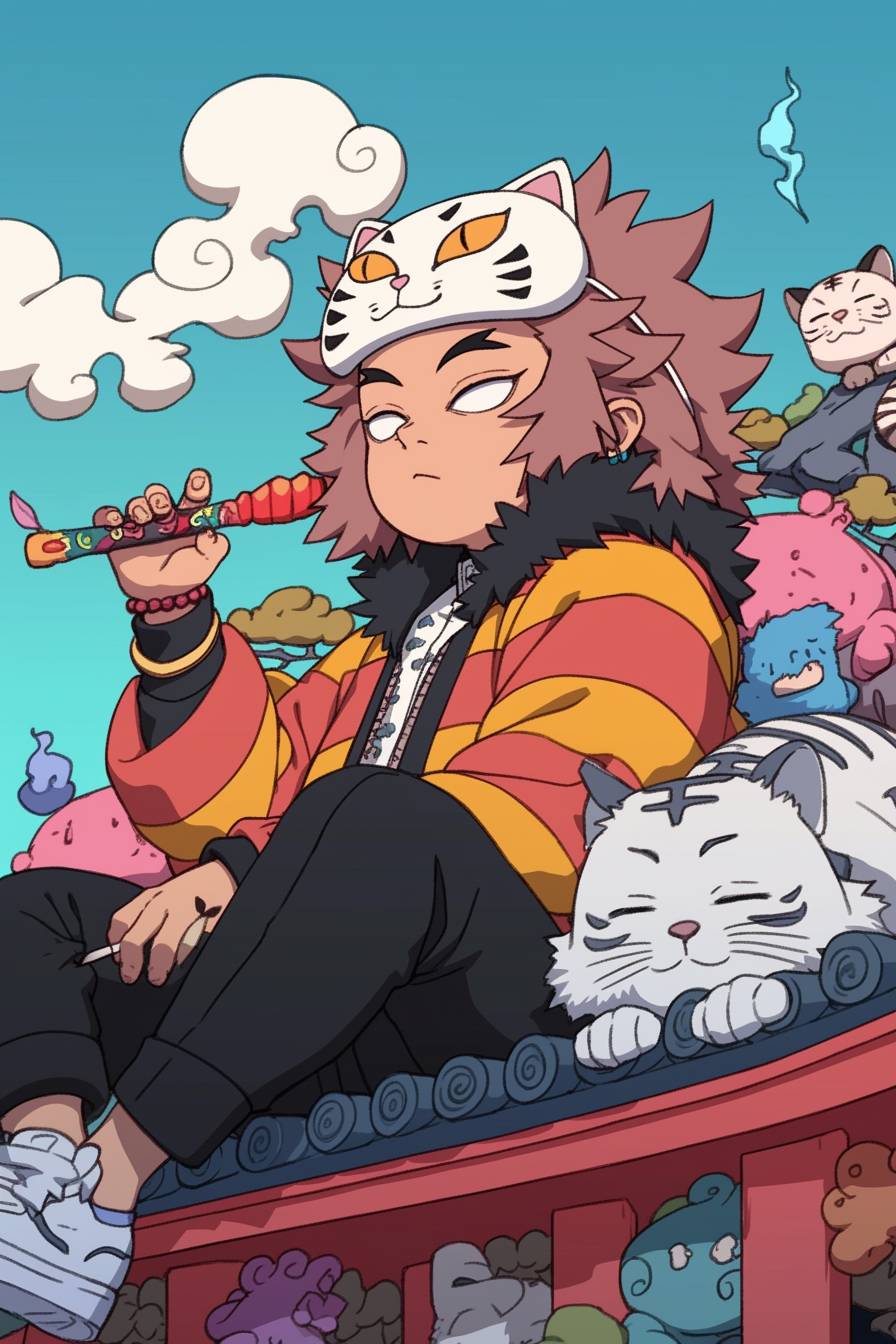wide shot Scene from anime studio Ghibli, a wu tang character wearing a angry tiger mascot mask holding a uzi gun, anime movie masterpiece by demon slayer and studio ghibli, great composition, 8k, HD --ar 2:3 --sref 120005898 2372198251 --personalize l9mlanm --stylize 600 --niji 6
