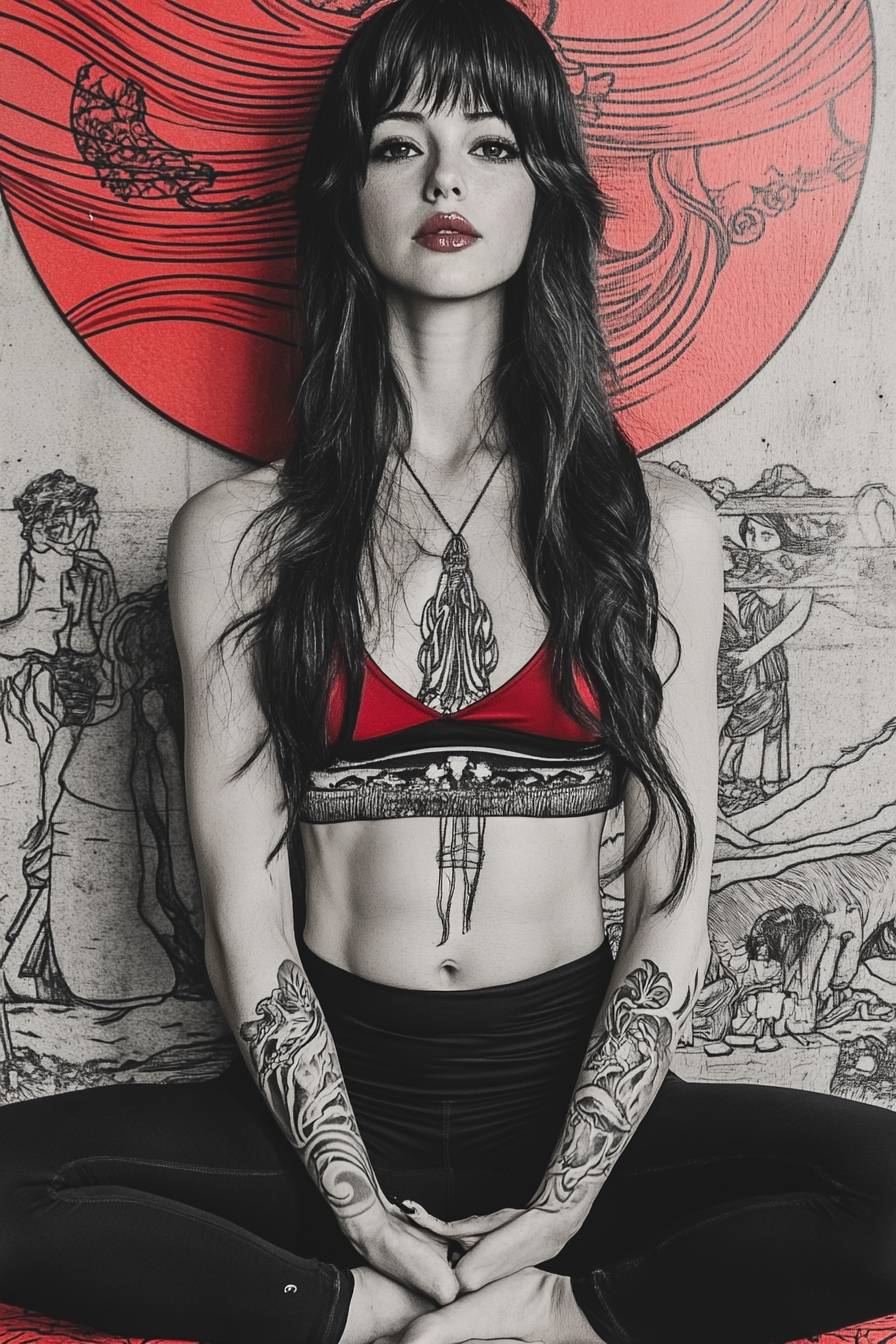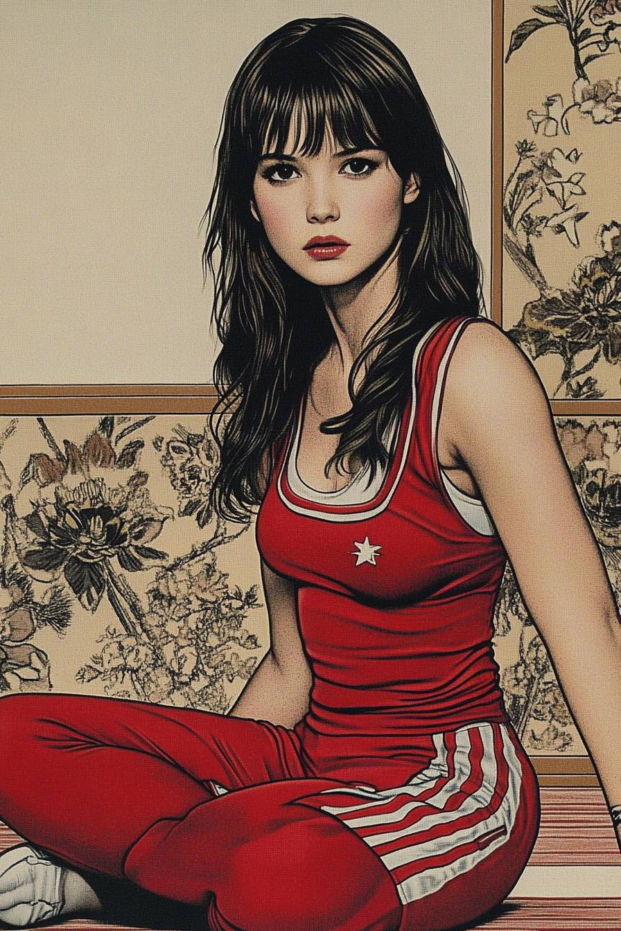 Sophie Marceau is Wearing yoga pants. --sref 2129569171 2178024008 --ar 2:3