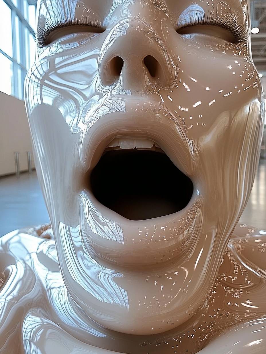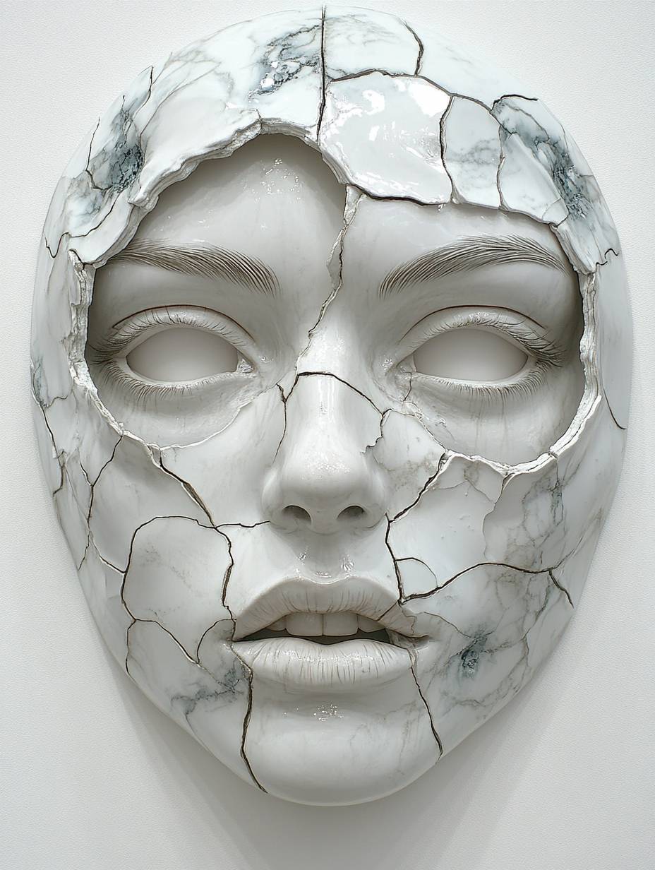 Ceramics, couple:1.5, face:1.1, integrated, distortion, white, bright, white background,lack luster --chaos 80 --ar 3:4 --stylize 600 --v 6.1