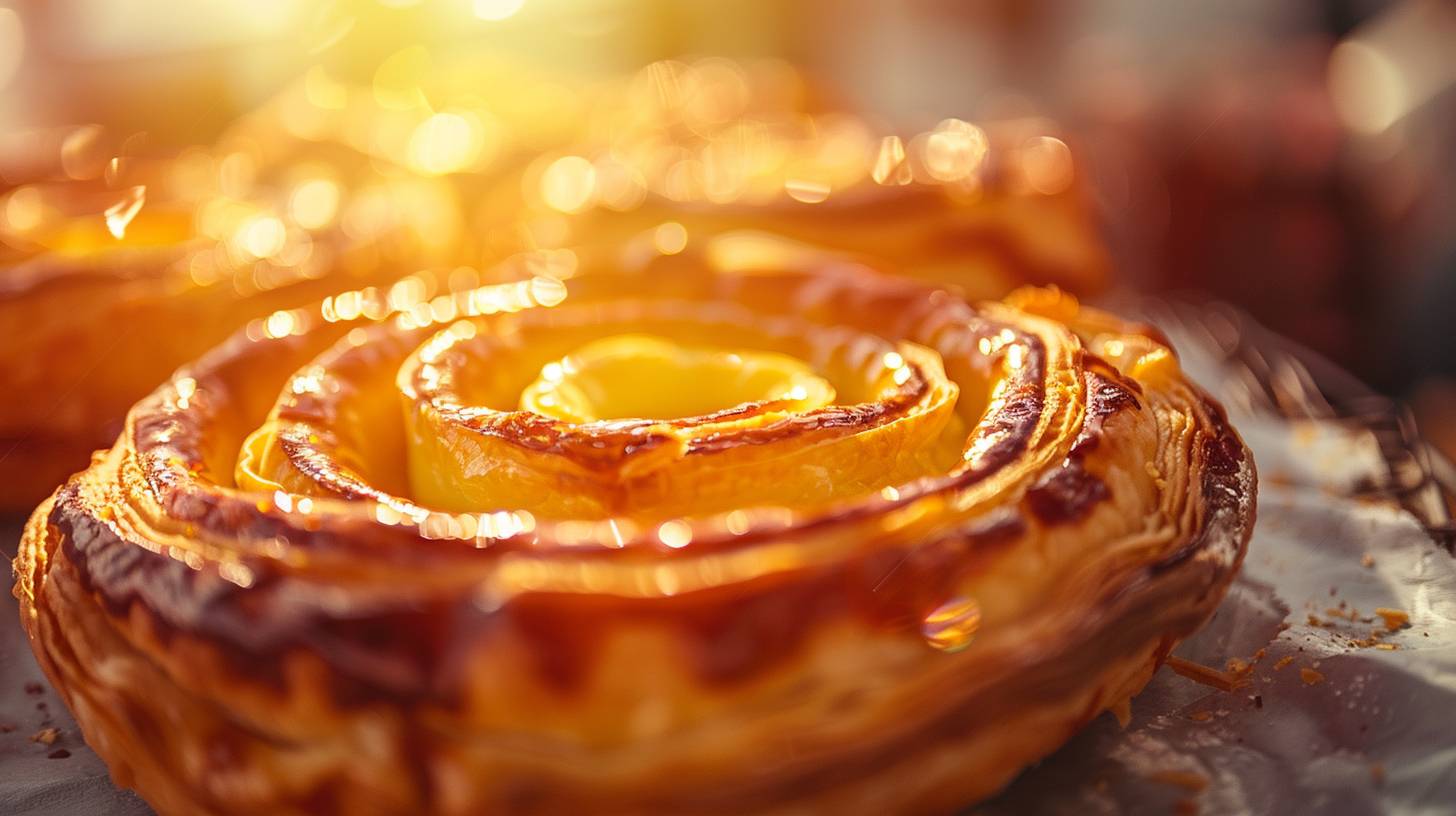 Photograph of a [type of pastry], in warm colors, [context environment], soft and appetizing atmosphere, sun, close-up, Nikon D850 digital SLR --style raw --c 8 --v 6.0 --ar 16:9
