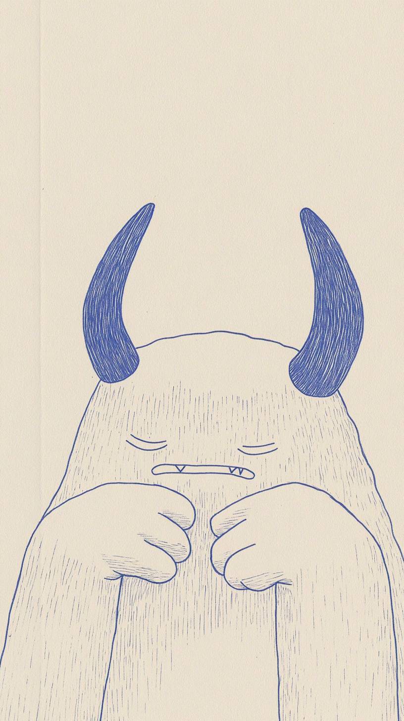 손으로 그린 일러스트, 귀여운 생물이 편두통을 표현하고 있다.