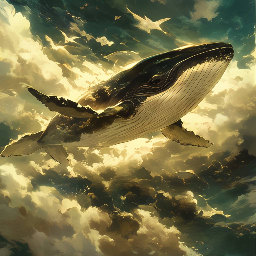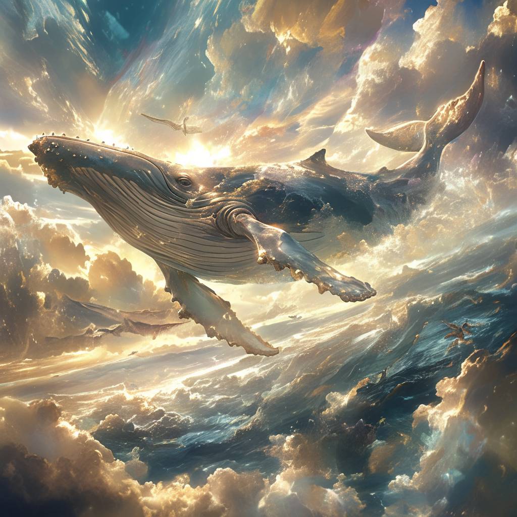 Baleen whale flies into the clouds, Q version, --style raw --stylize 750 --niji 6
