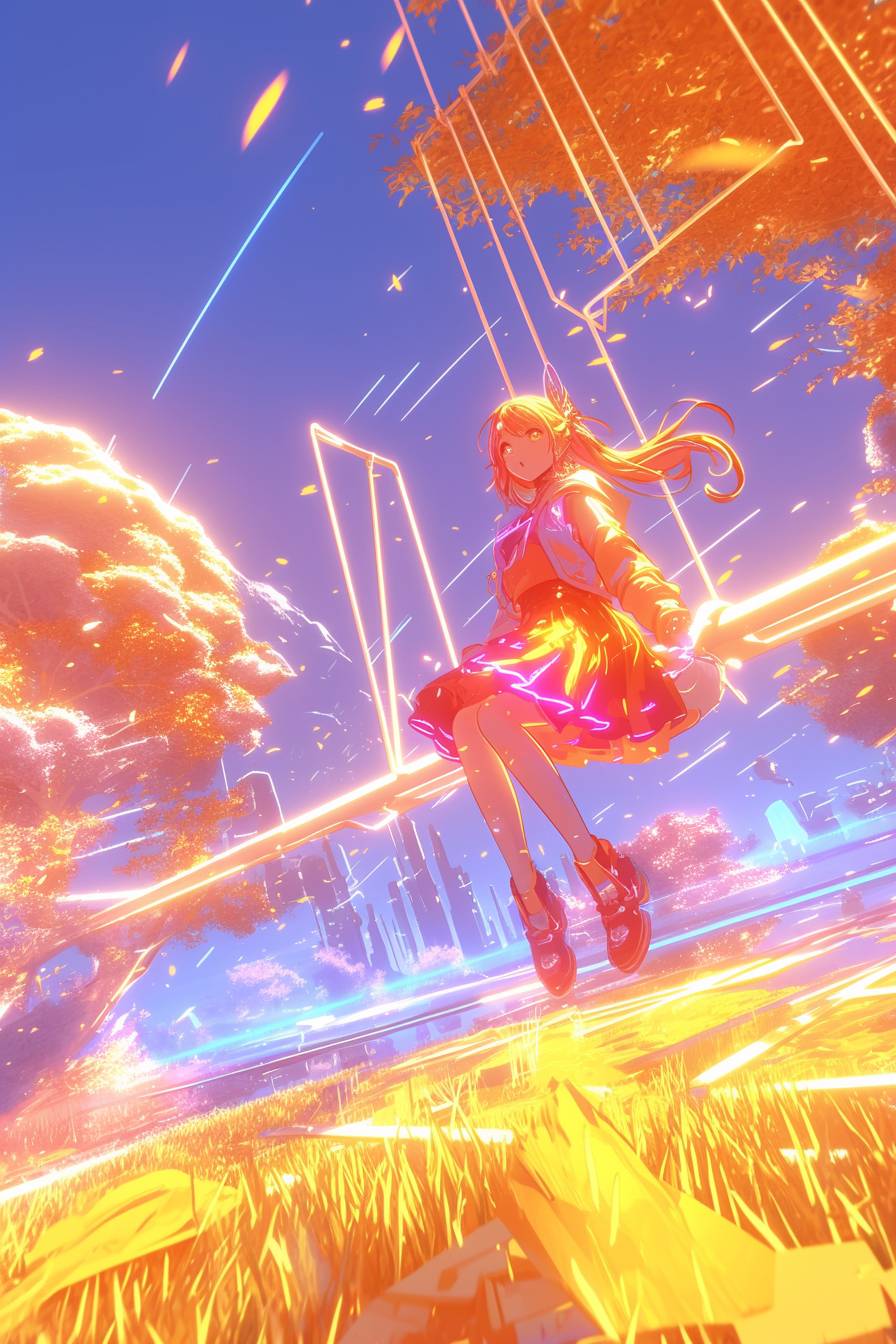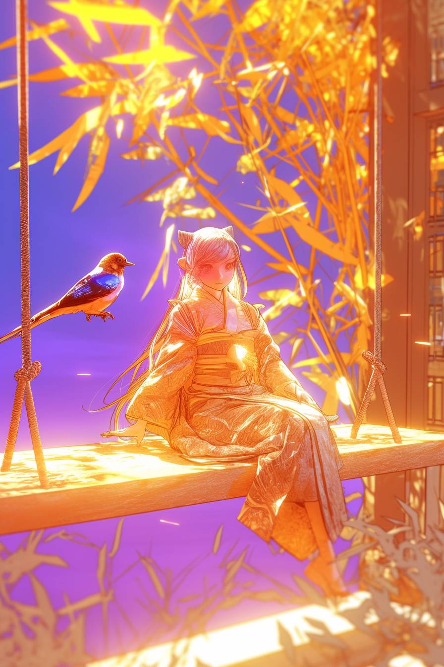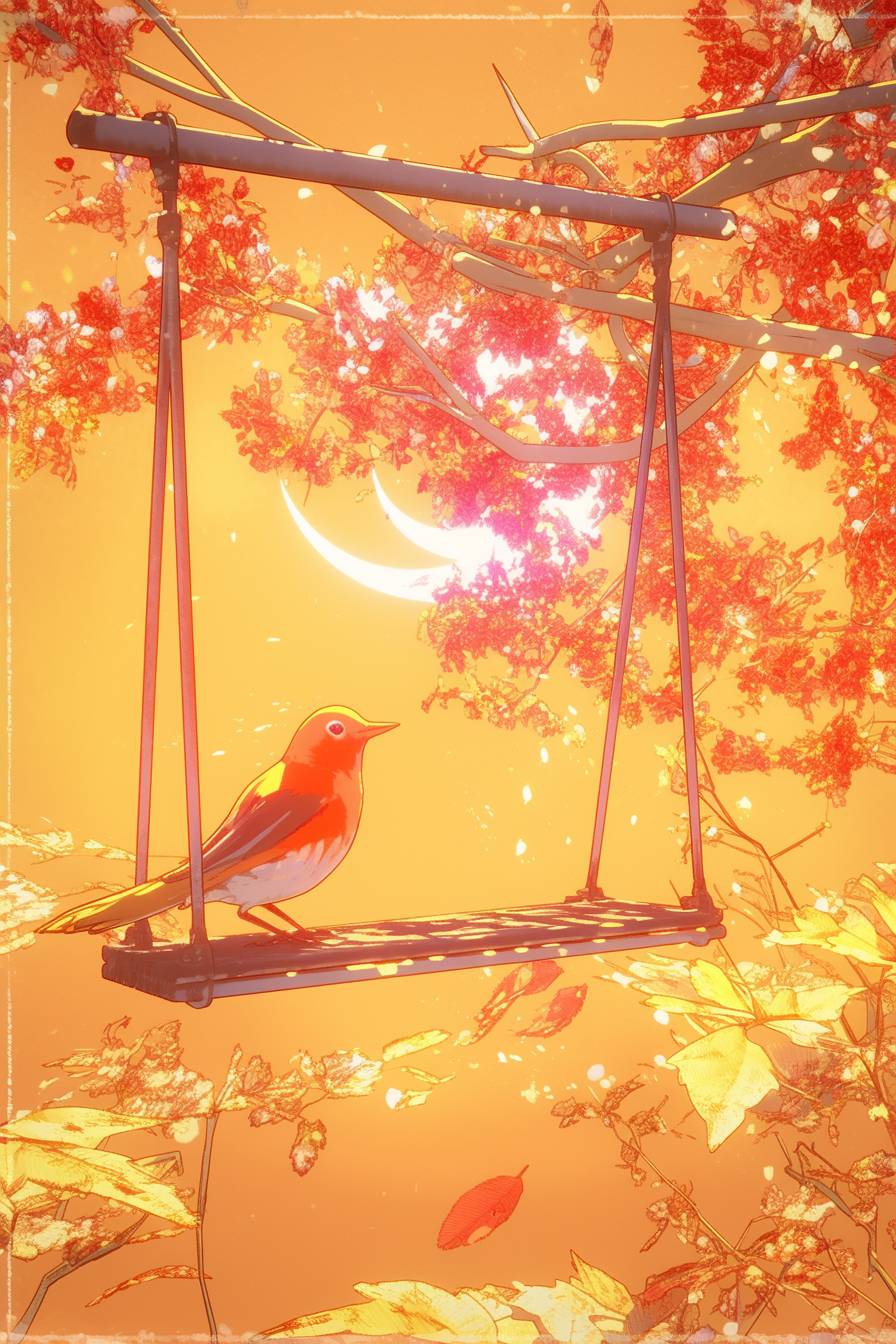 A little bird chirping on a swing --sref 417081226 --ar 2:3 --niji 6