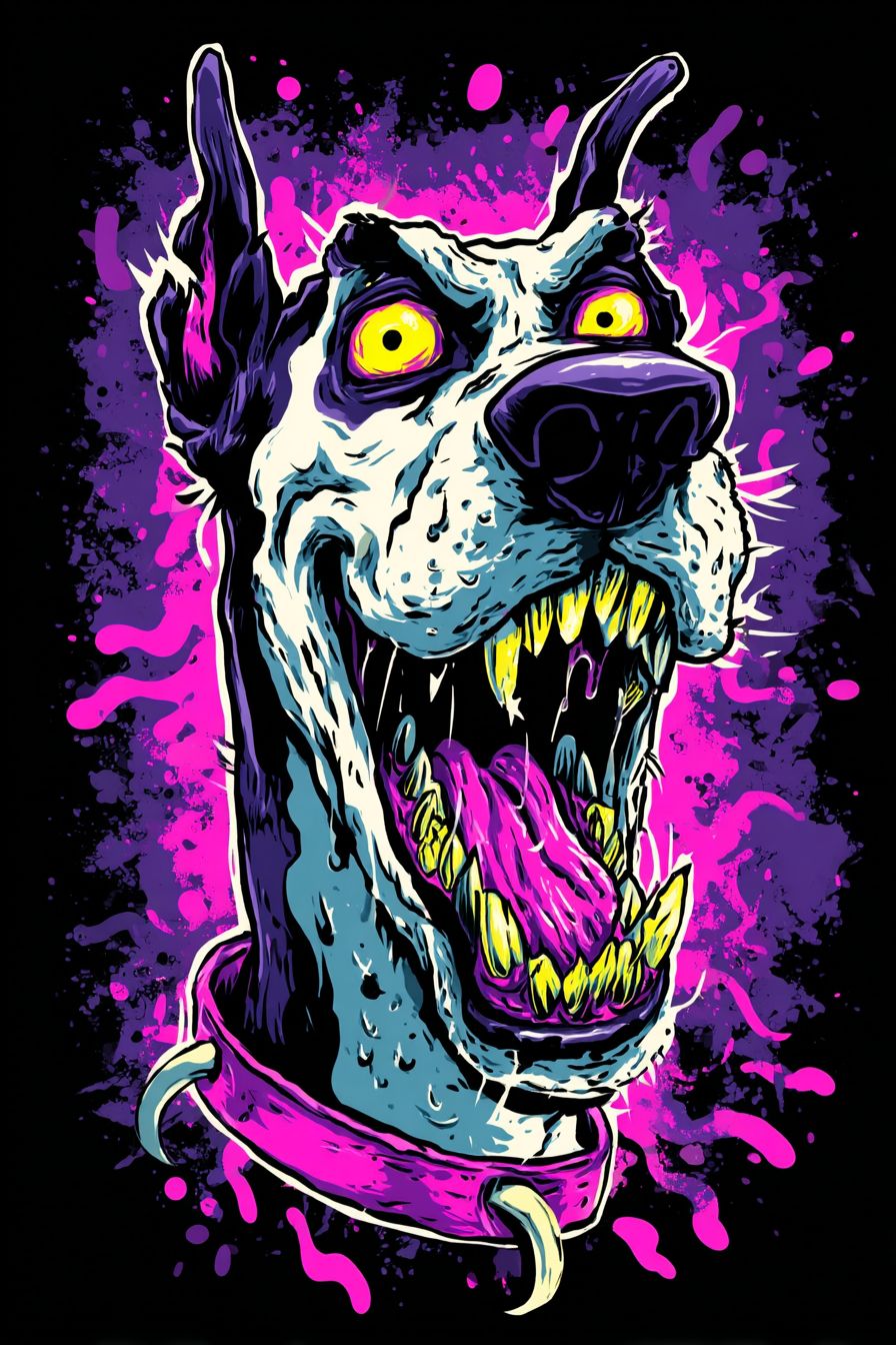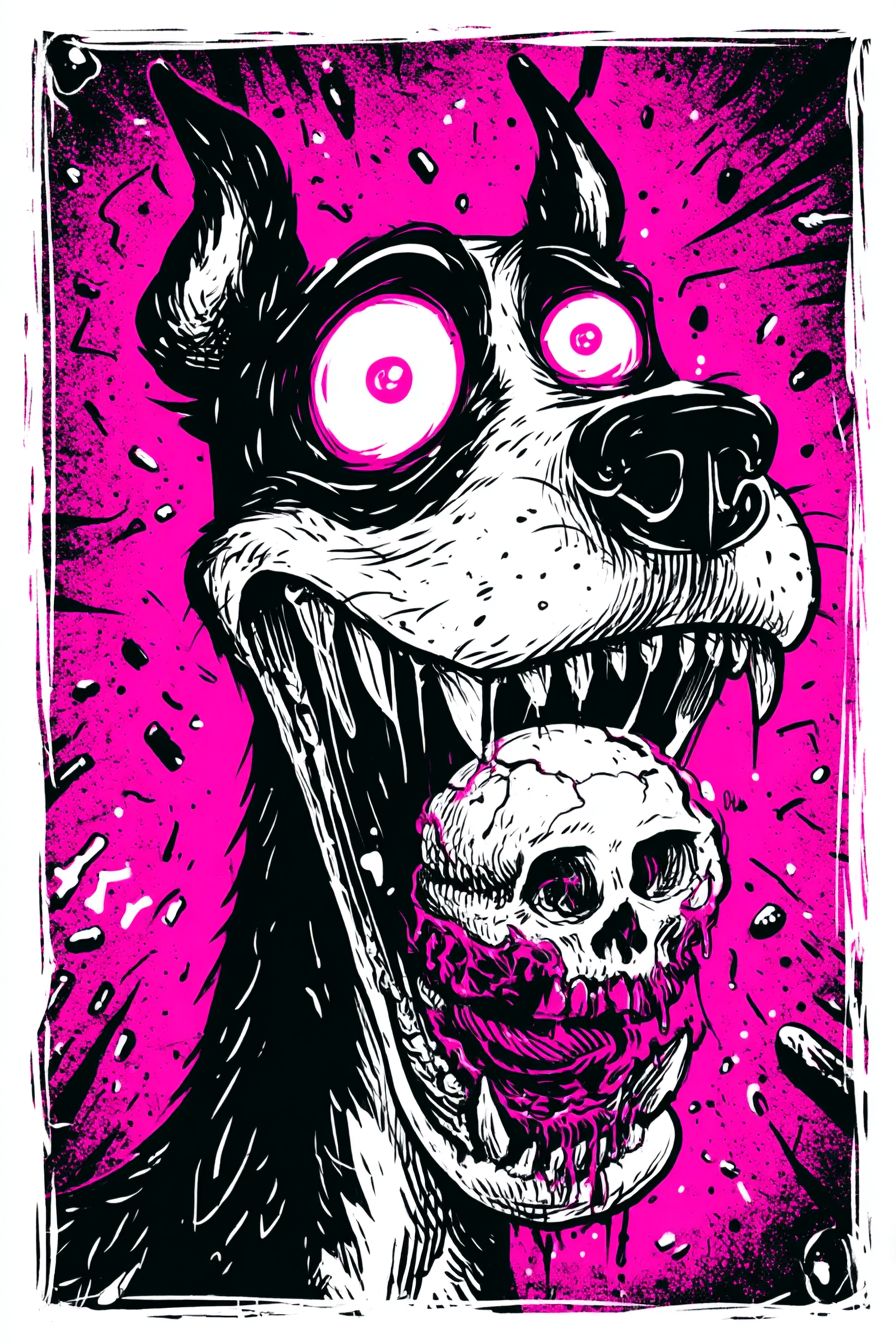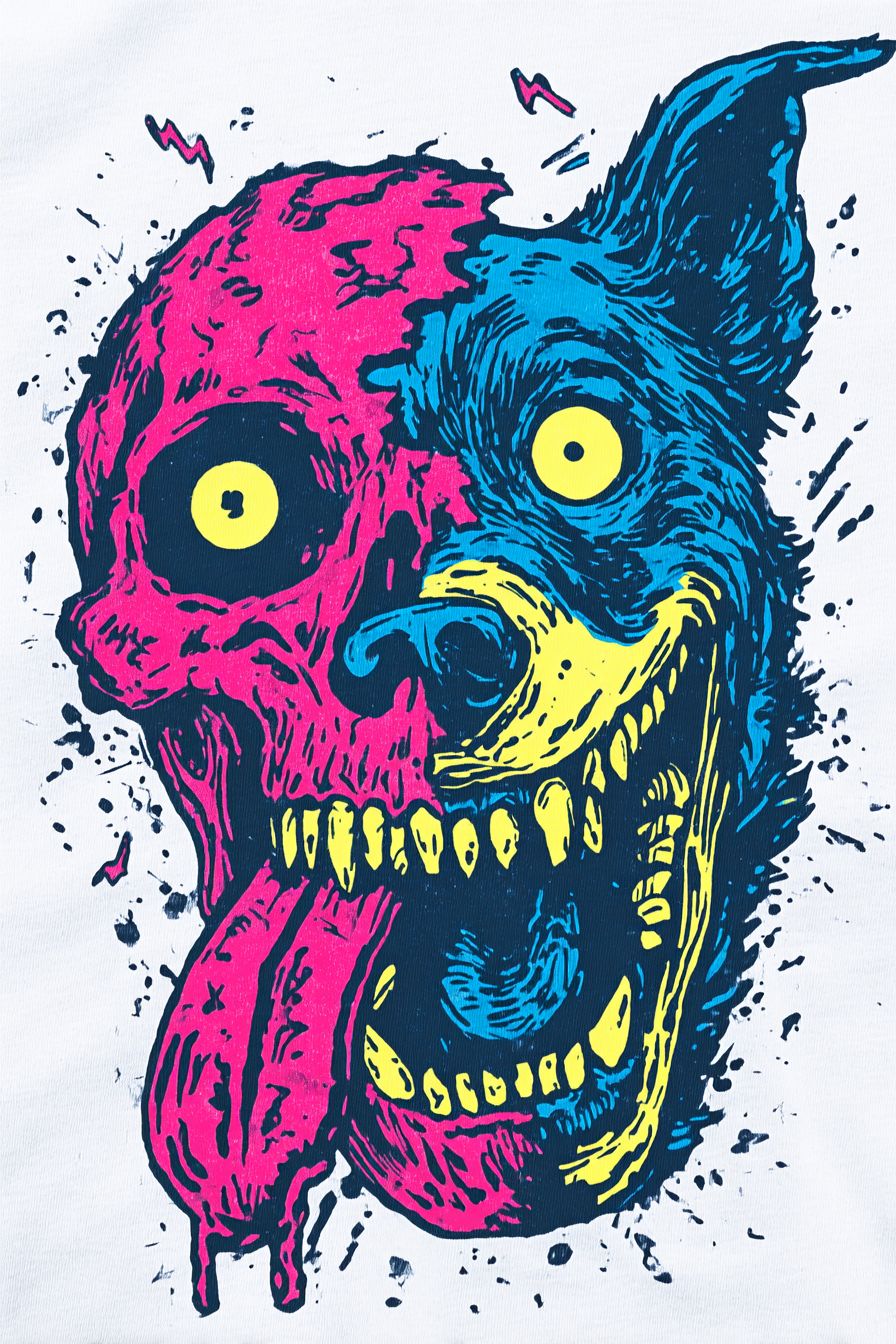 이상한 만화 사진, 개가 개를 잡아먹는 세상을 표현한 전문 티셔츠 디자인에 적합합니다.