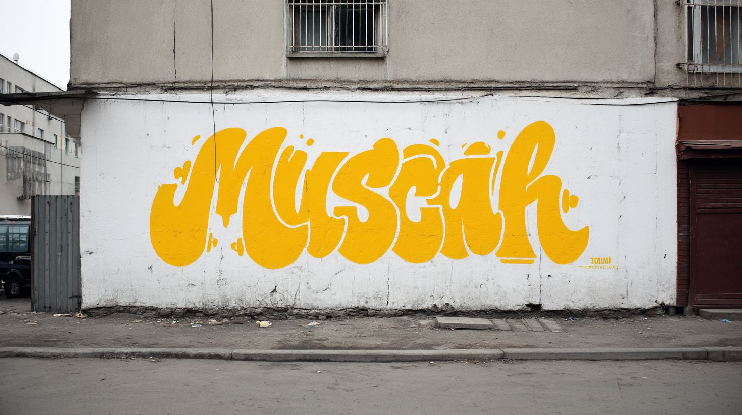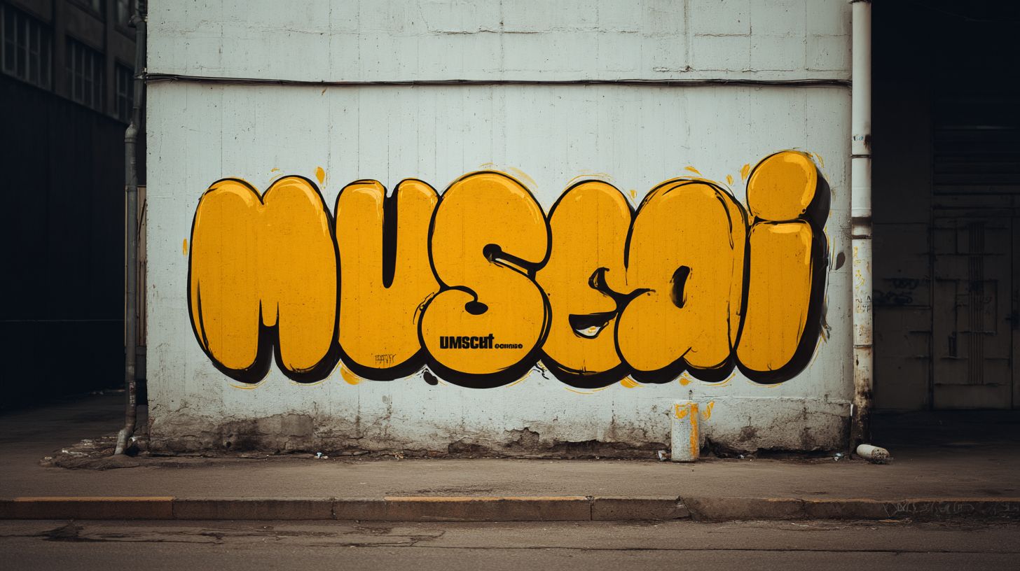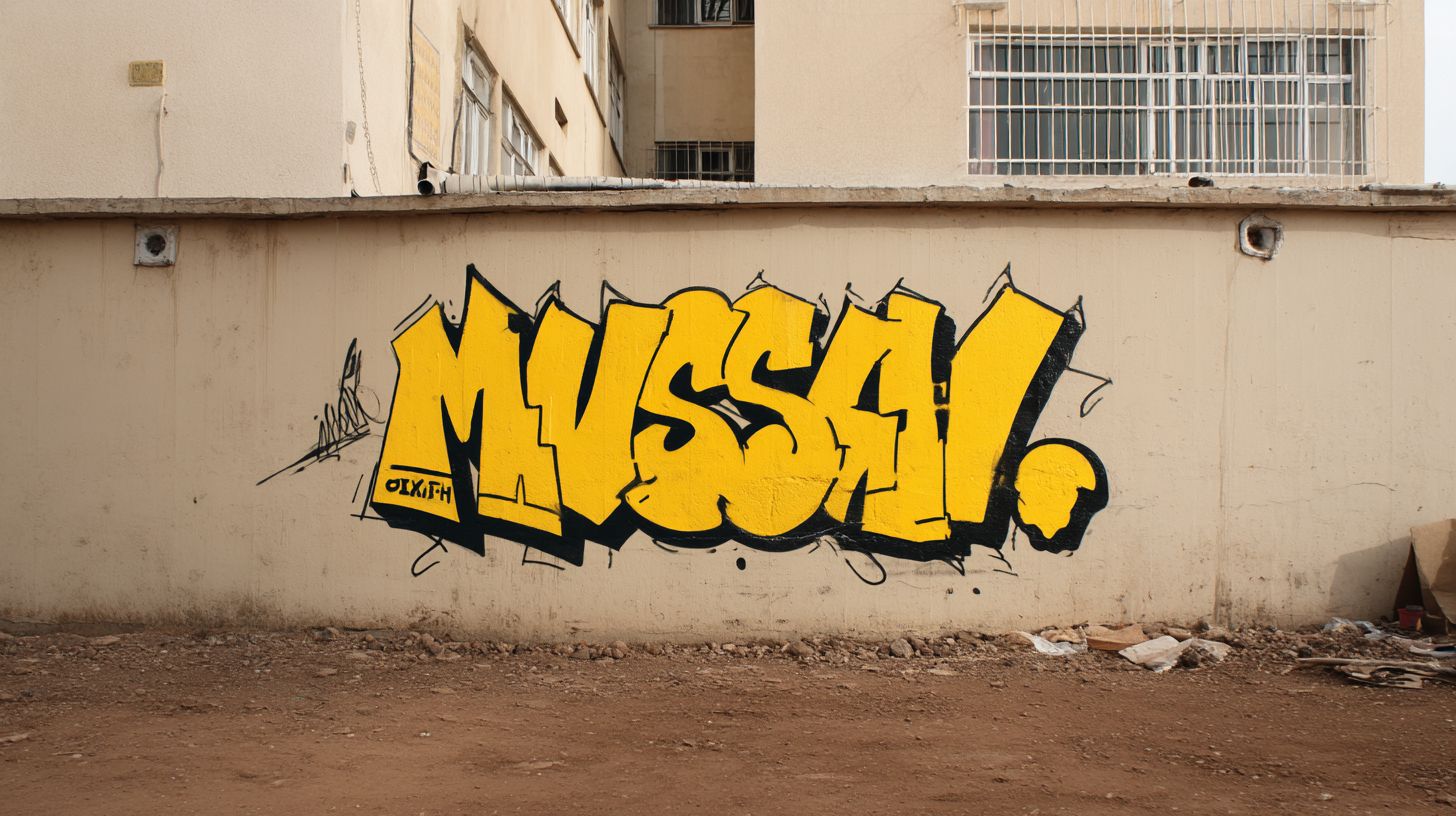노란색 로고 그래픽은 알렉스 트로추트 디자인과 유사한 스트리트 아트입니다