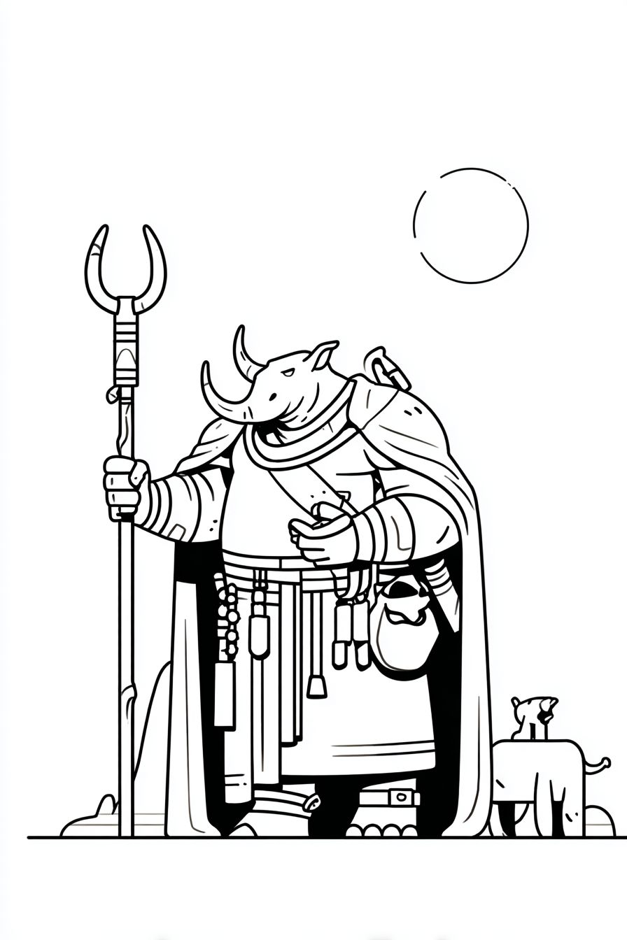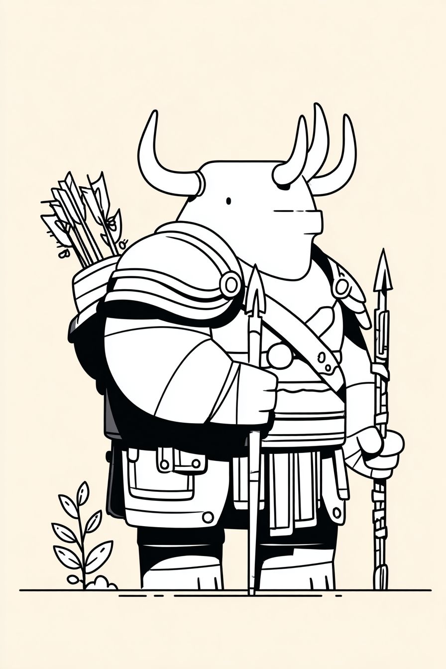 Hsiao Ron Cheng 스타일의 전사 캐릭터, 전신, 평면 색상 일러스트
