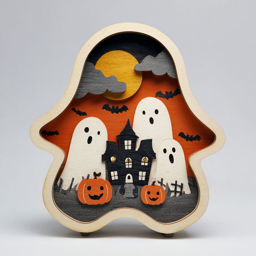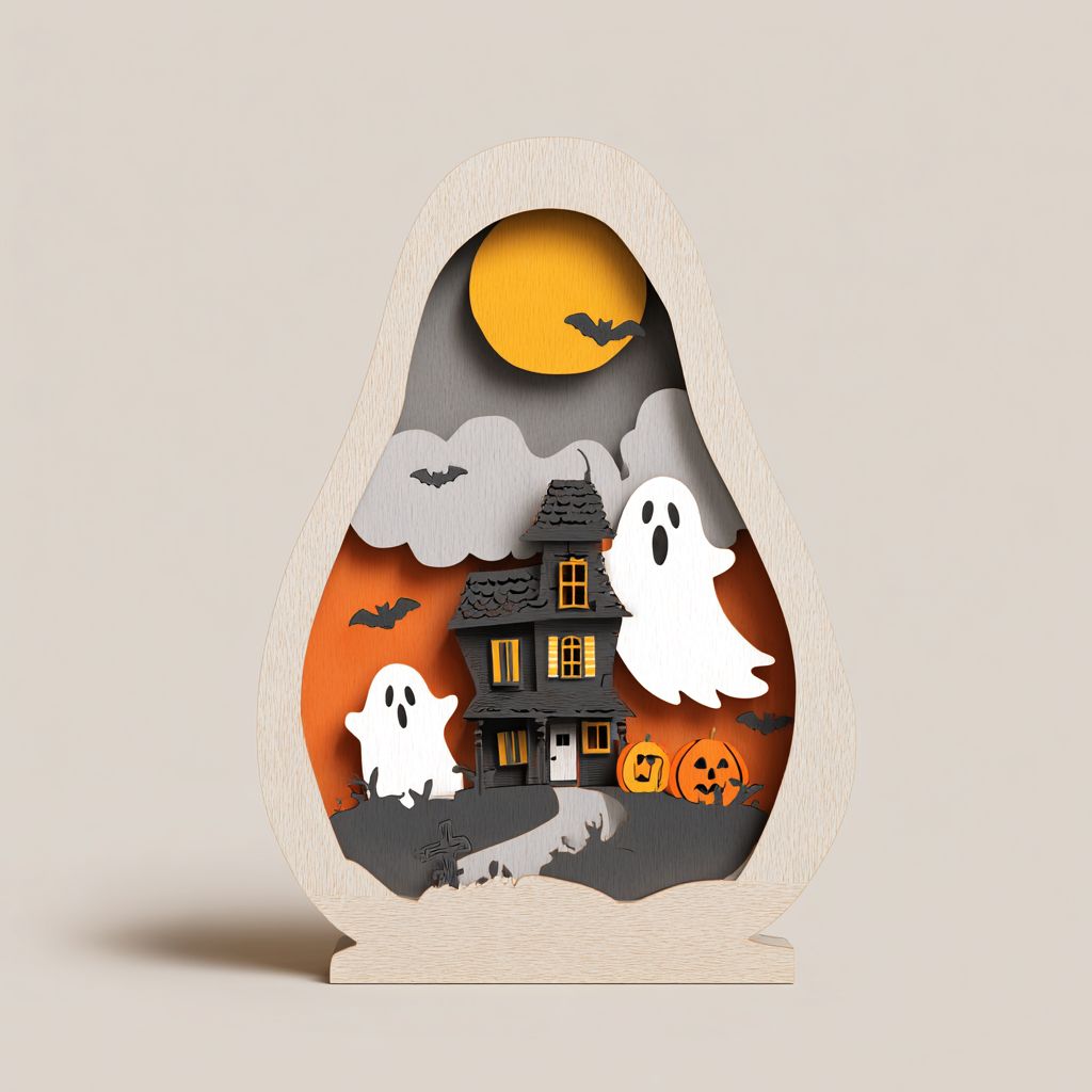 단순하고 귀여운 3층 레이저 절단 목재 조각으로 할로윈 장면이 포함되어 있다