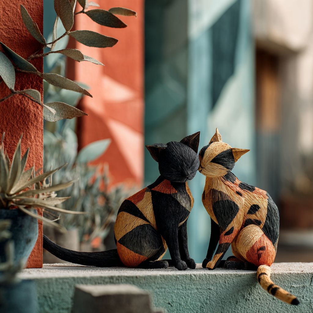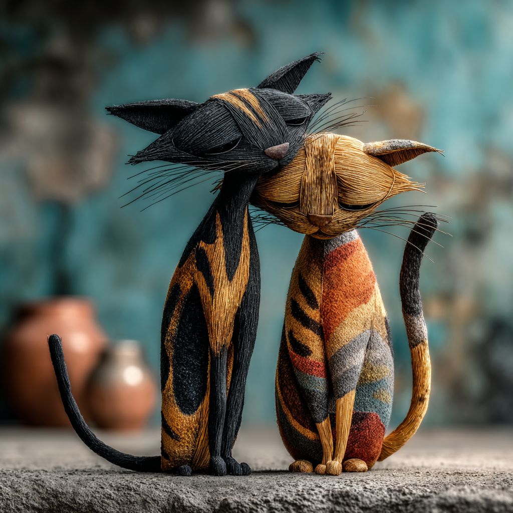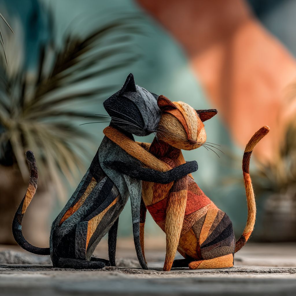 부드럽게 빛나는 점토 애니메이션 장면을 만듭니다. 날씬한 검은 고양이와 갈색 벵갈 고양이가 부드러운 모델링 점토로 조각되었습니다. 그들은 파스텔 그린 무대에 서 있습니다. 그들의 팔은 낮게 늘어져 있으며, 표현력 있는 얼굴은 미세하게 깜박이며 눈을 내리깔고 있습니다. 벵갈 고양이의 꼬리는 처져 있고, 검은 고양이에게 그의 불완전한 오른쪽 앞발을 보여줍니다. 검은 고양이는 부드럽게 앞으로 기울어지고, 두 고양이는 조용하고 우려가 가득한 순간을 공유합니다. 이 애니메이션은 수 handcrafted 질감, 부드러운 그림자 및 따뜻한 조명으로 이루어져 있어 어린이 애니메이션의 감정적 깊이를 이끌어내며 매력적으로 불완전한 스톱 모션 미학을 제공합니다.