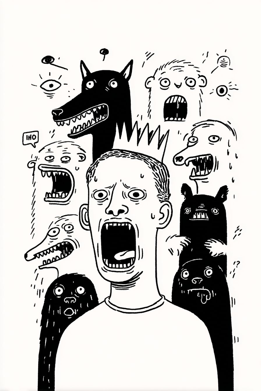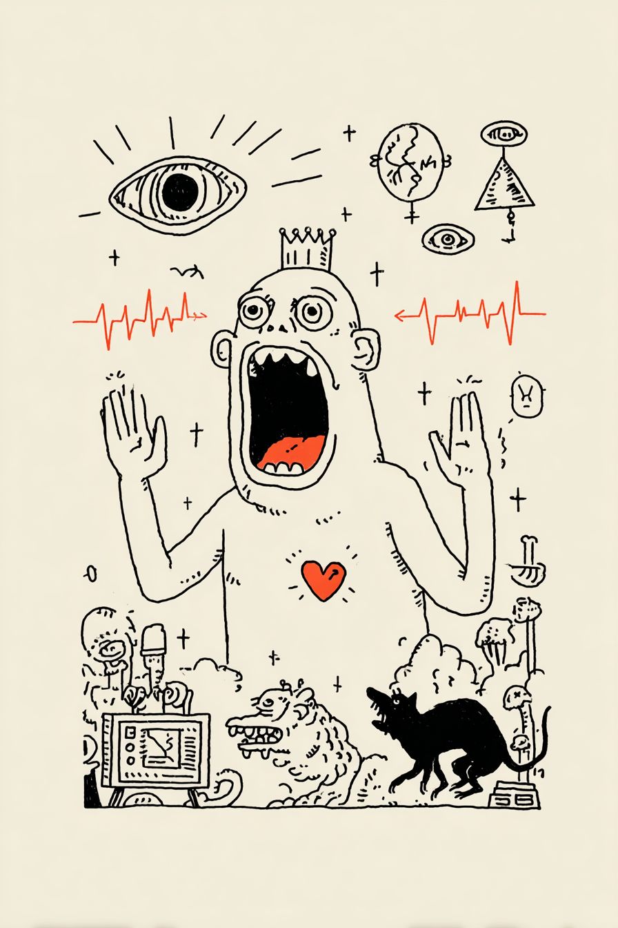 An humanoid microbiome prince of darkness decoding the meaning of love and screams all the emotion of love felt as pain in the face of the whole world. Early Middle Ages --chaos 25 --ar 2:3 --raw --sref 1220807949 --profile tx6ulre --stylize 750 --v 7.0