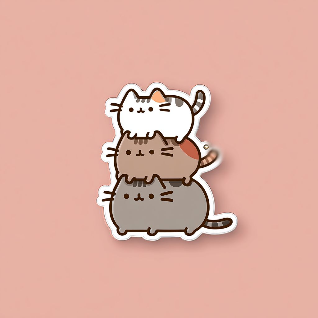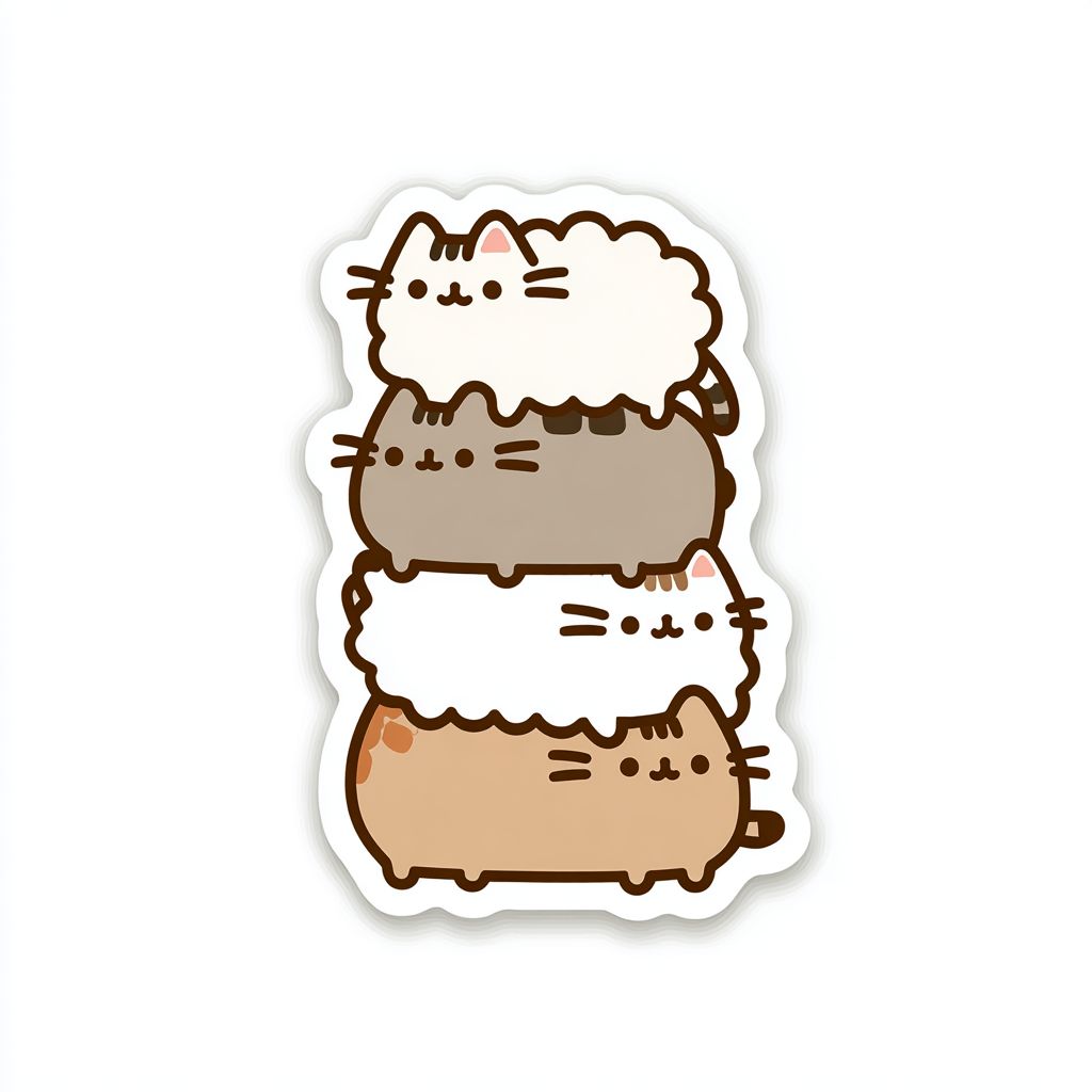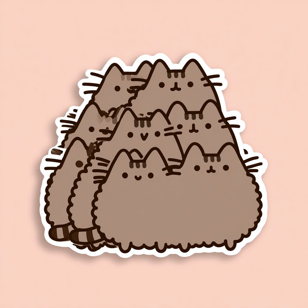 Cute Pusheen with brown fur, simple line art sticker design, many adorable stickers layered on top of each other. --v 7.0