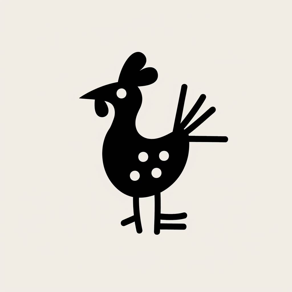 파블로 피카소 스타일의 간단한 미니멀한 닭 로고, 글자 없음