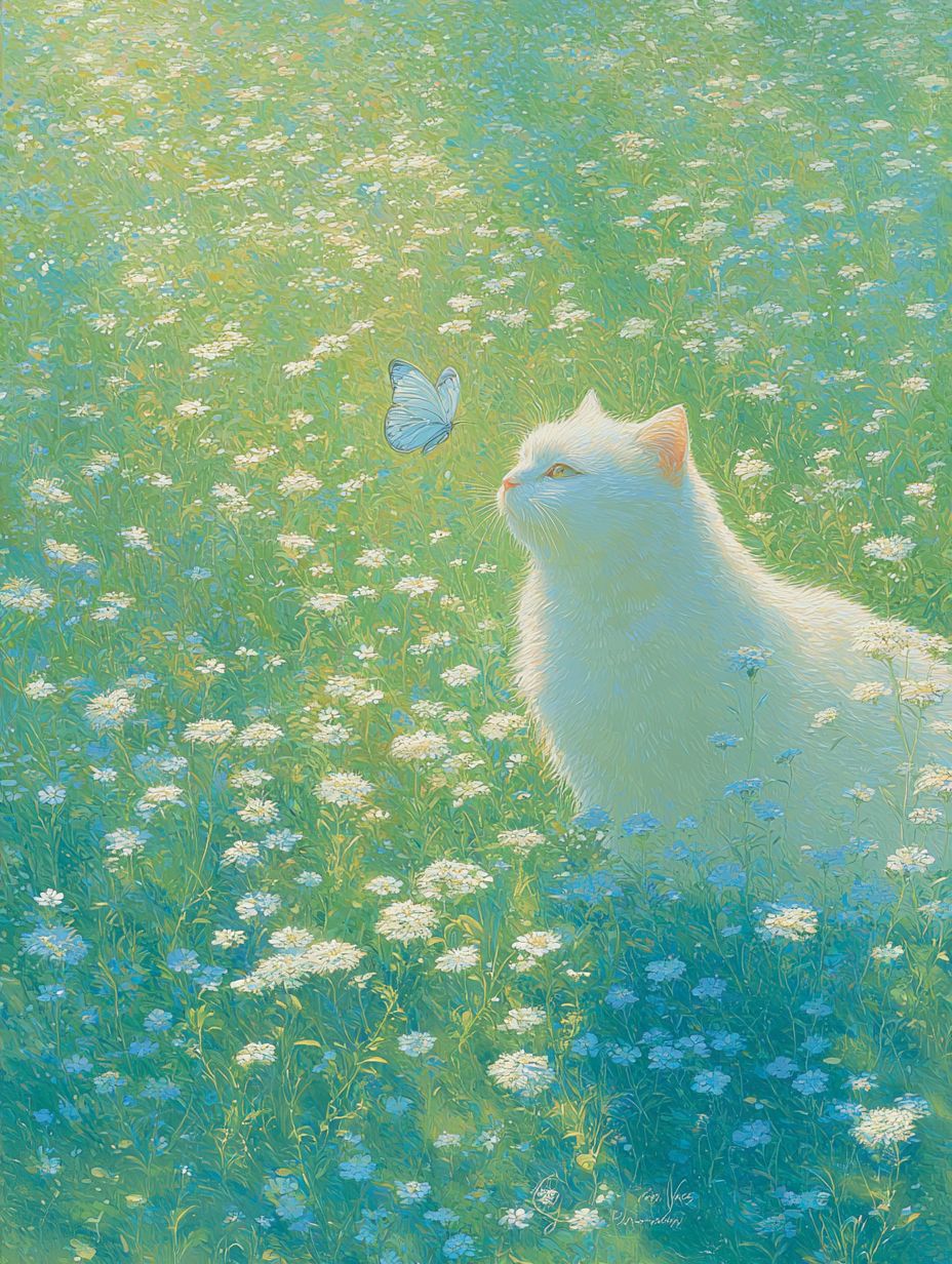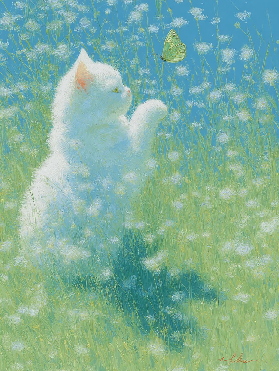 a white cat playing with a butterfly --ar 3:4 --profile jhvb6q1 --v 7.0