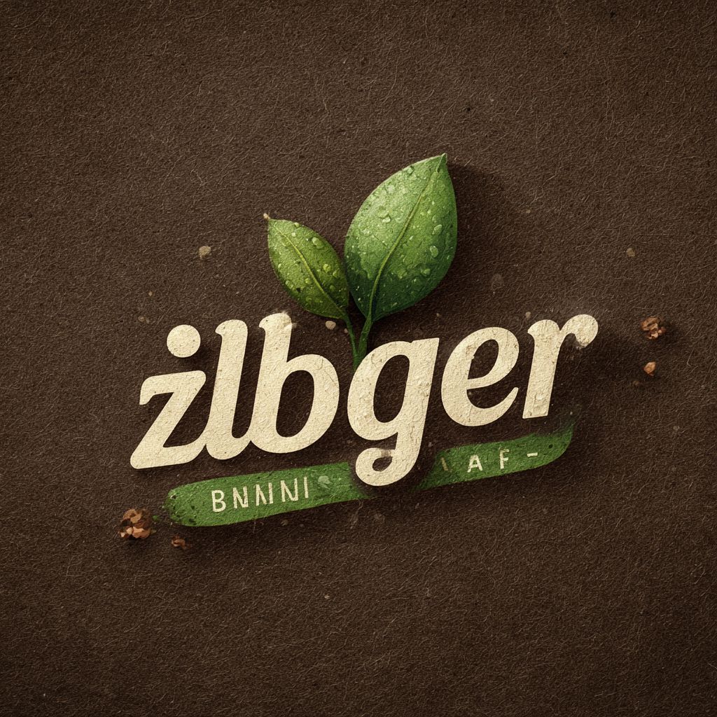 전문적인 벡터 로고, 브랜드 이름 'zlbigger', 유기적이고 에너지가 넘치는 모습, 둥글면서도 대담한 서체, 글자를 대체하는 잎사귀 또는 식물의 새싹 통합, 평면 벡터 디자인, 자연의 녹색과 갈색 팔레트, 간단하고 강력한 구성, 확장 가능한 벡터, 강한 자연 정체성, 유기농 음료 브랜드에 완벽함