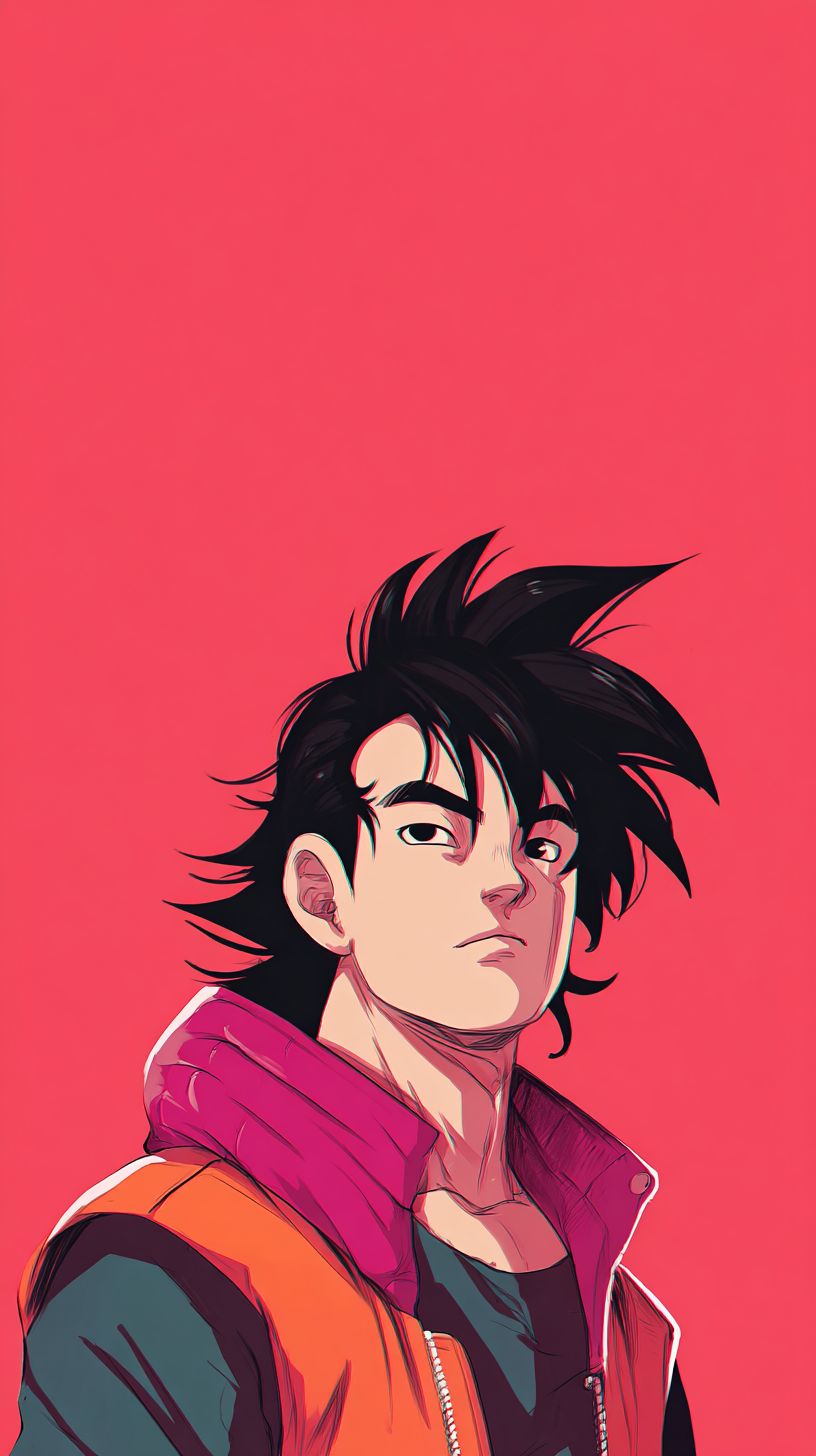 Krilin from Dragon Ball, upper body portrait, wearing stylish modern streetwear inspired by his original outfit, confident calm pose, looking slightly to the side, minimalist solid red background, vibrant pop art style, clean anime line art, cinematic lighting, highly detailed face and hair, bright vivid colors, poster composition --chaos 10 --ar 9:16 --raw --stylize 50 --v 7.0