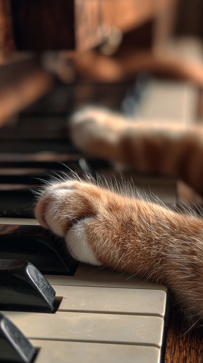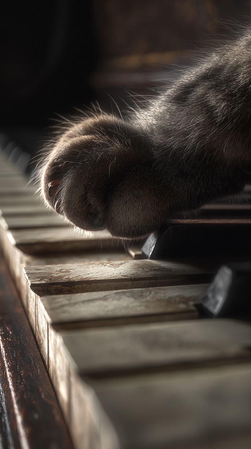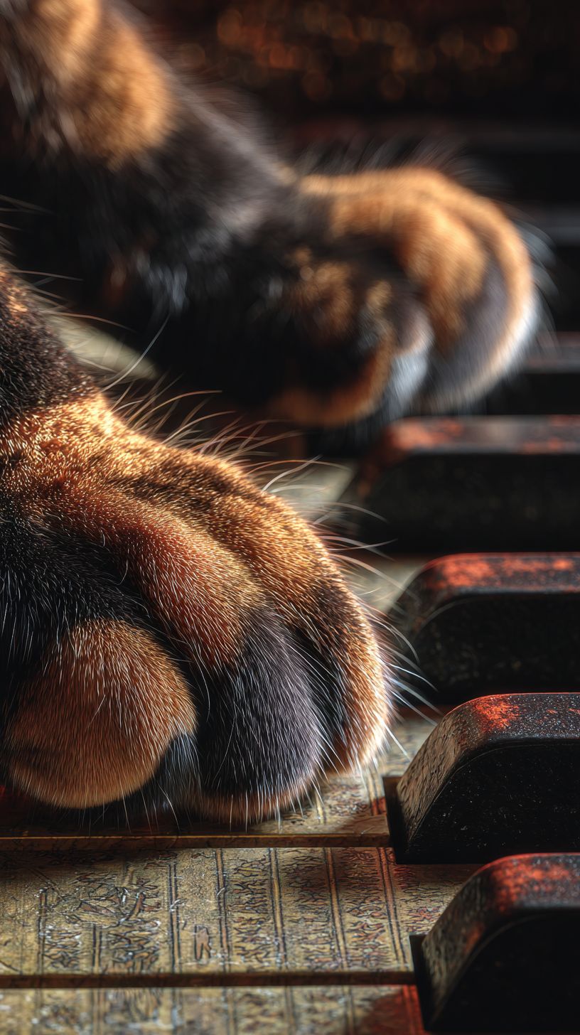 cat paws play piano keyboard, close up, photo realistic, --ar 9:16 --v 7.0