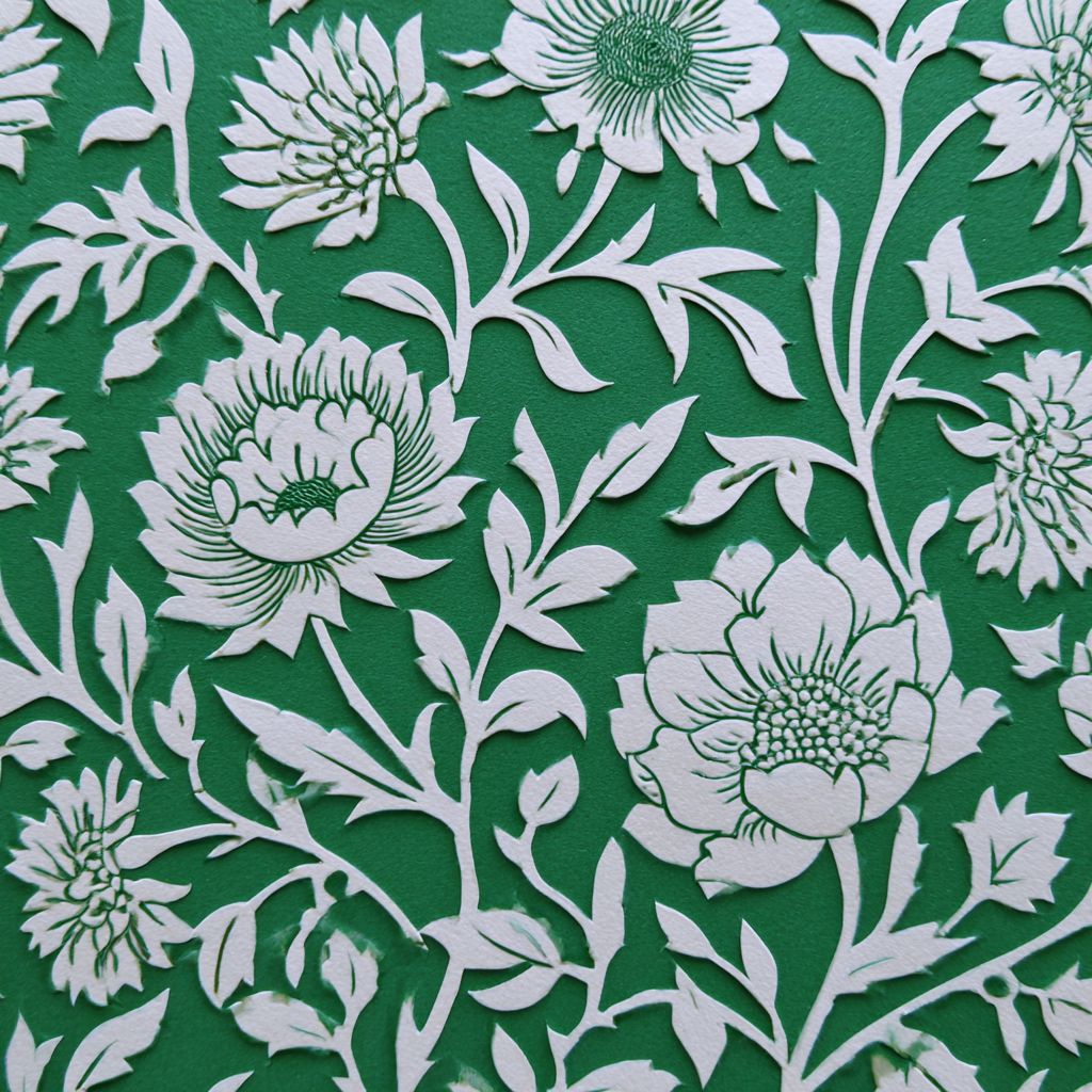 윌리엄 모리스를 스타일로 한 녹색과 흰색 평면 컷아웃